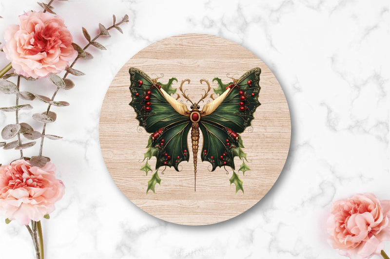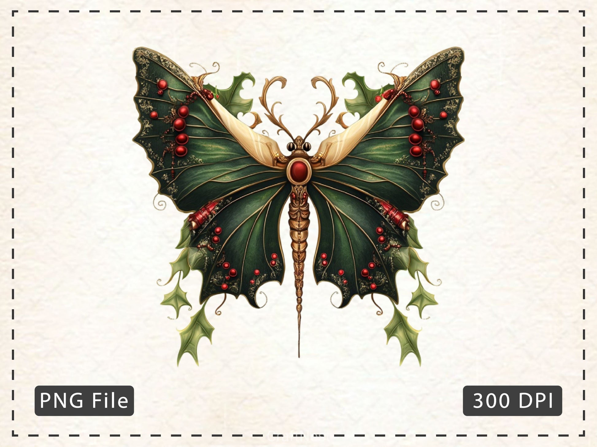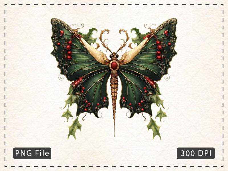 Festive butterflies celebrating Christmas for holiday nature projects.