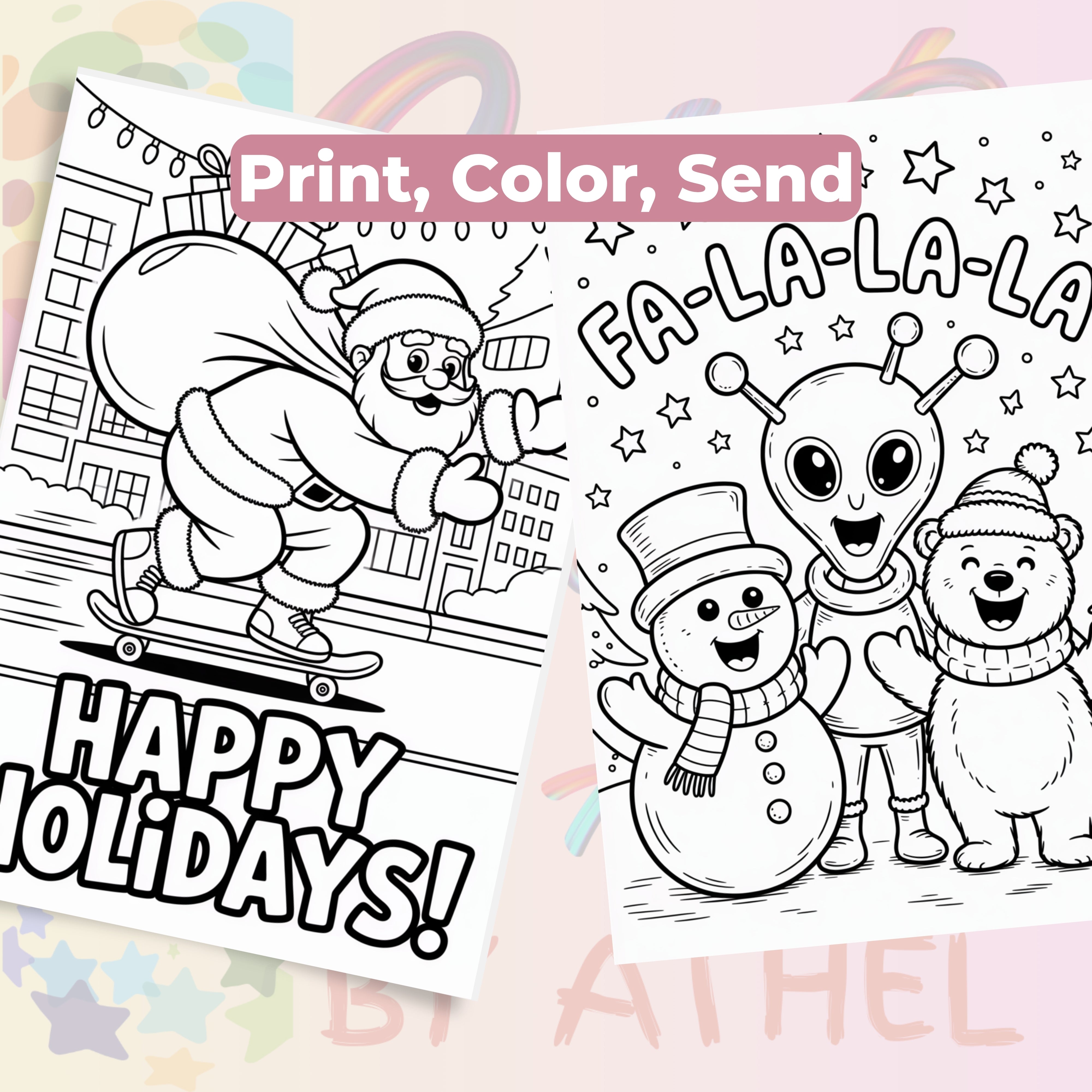 Delight in the festive spirit with our Christmas Cards Coloring Books Bundle, perfect for creative holiday fun. Featuring a variety of intricate designs, these coloring books are ideal for crafting personalized Christmas cards. Unleash your creativity and spread joy with each colorful masterpiece. Perfect for all ages, this bundle makes a thoughtful gift for loved ones. Capture the magic of the season and create cherished memories with every stroke.