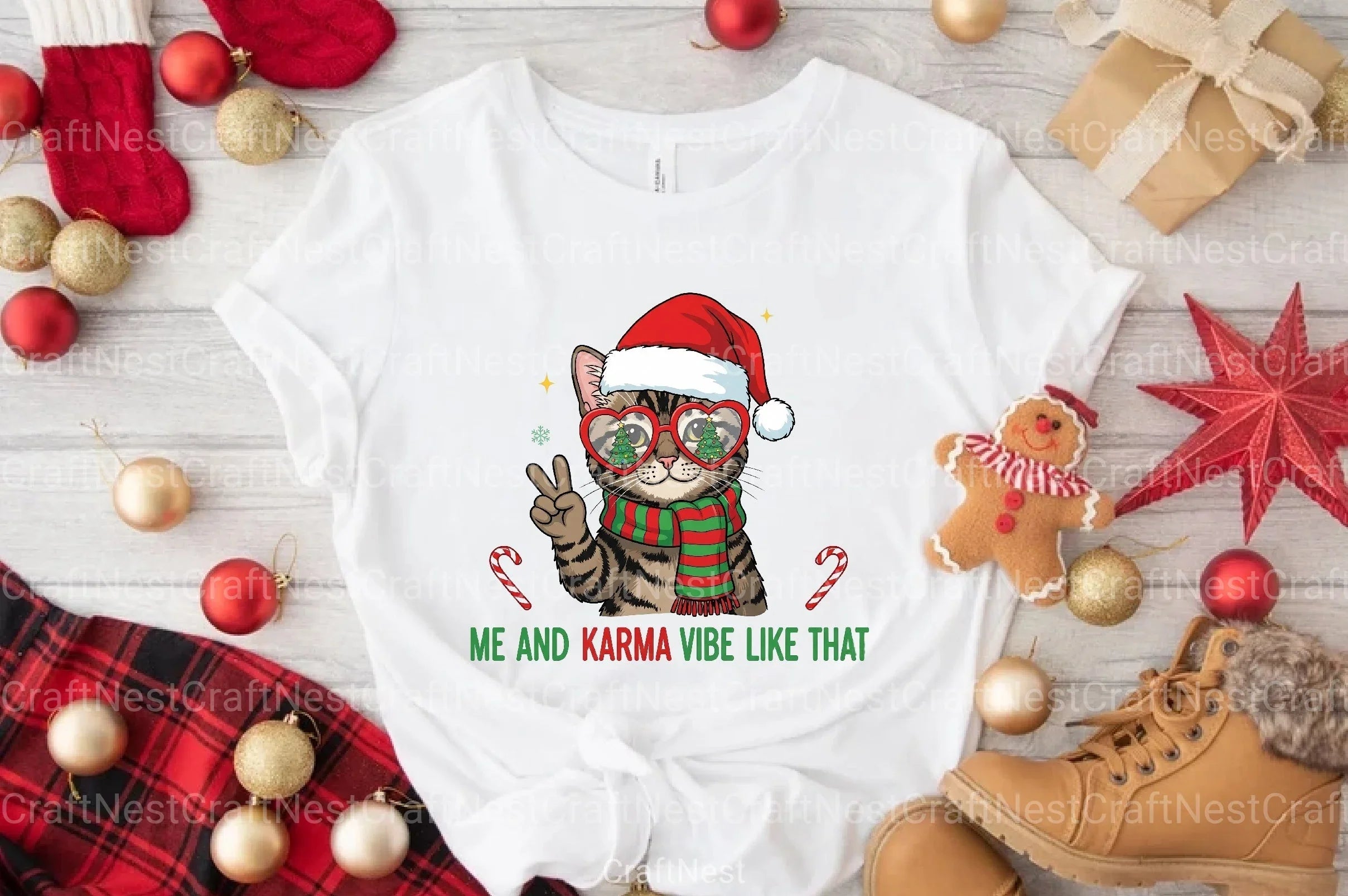 Spread holiday cheer with our Christmas Cat Karma Quote Clipart Bundle. Featuring whimsical cat designs and festive quotes, this bundle is perfect for creating charming holiday cards, decorations, and crafts. Ideal for cat lovers and Christmas enthusiasts alike, these cliparts add a touch of feline magic to your seasonal projects.