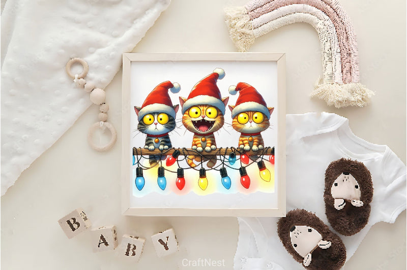 Festive cats on fences celebrating Christmas for holiday pet projects.