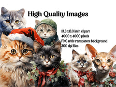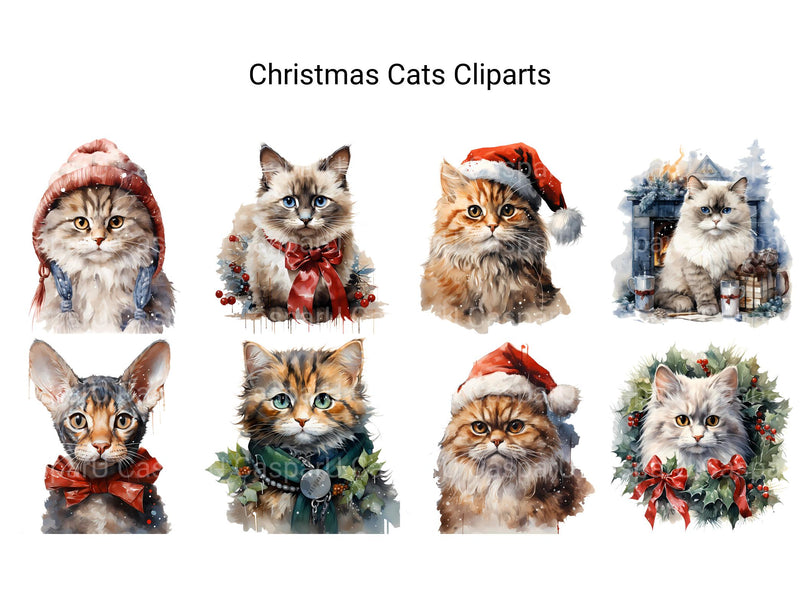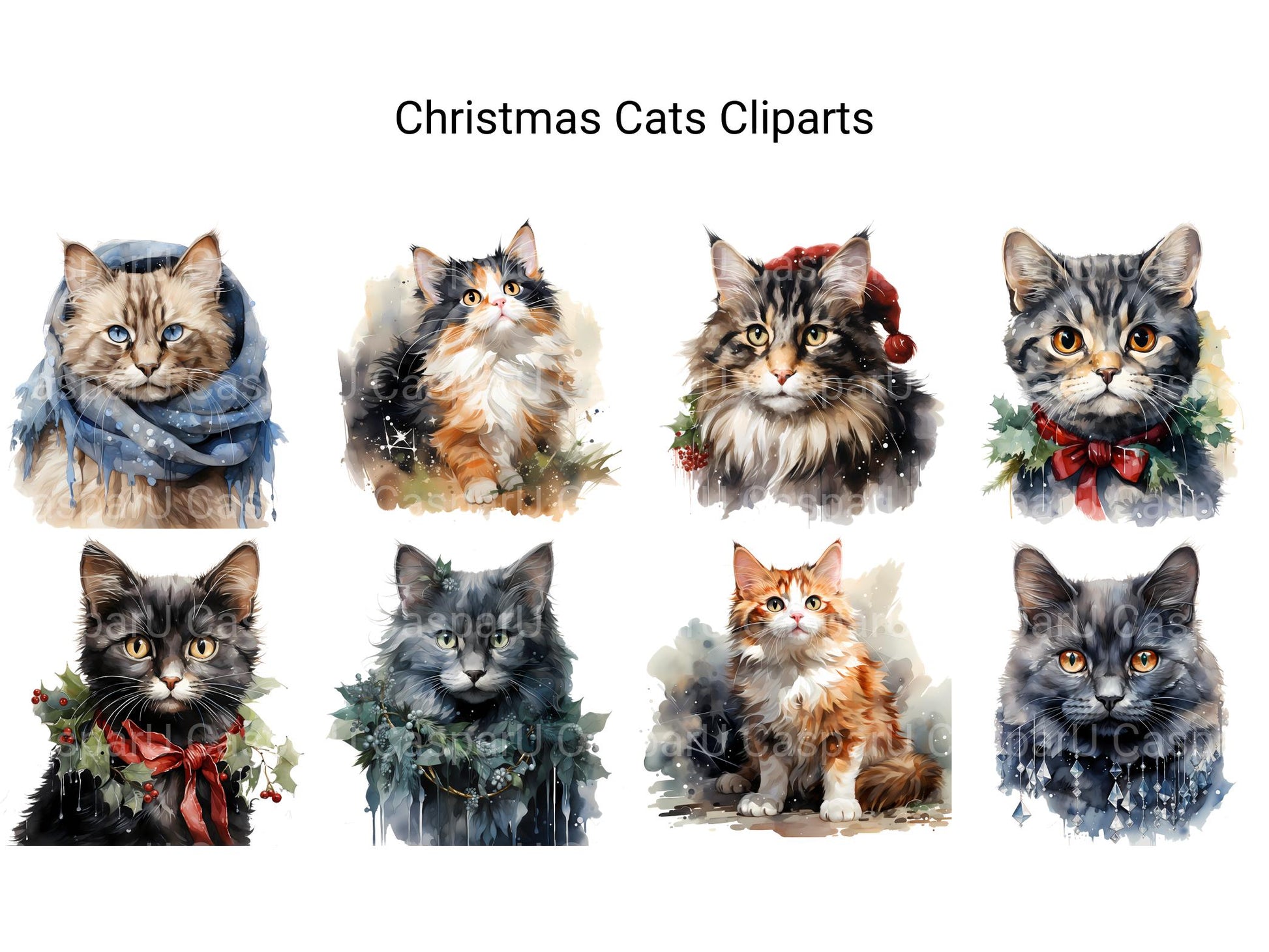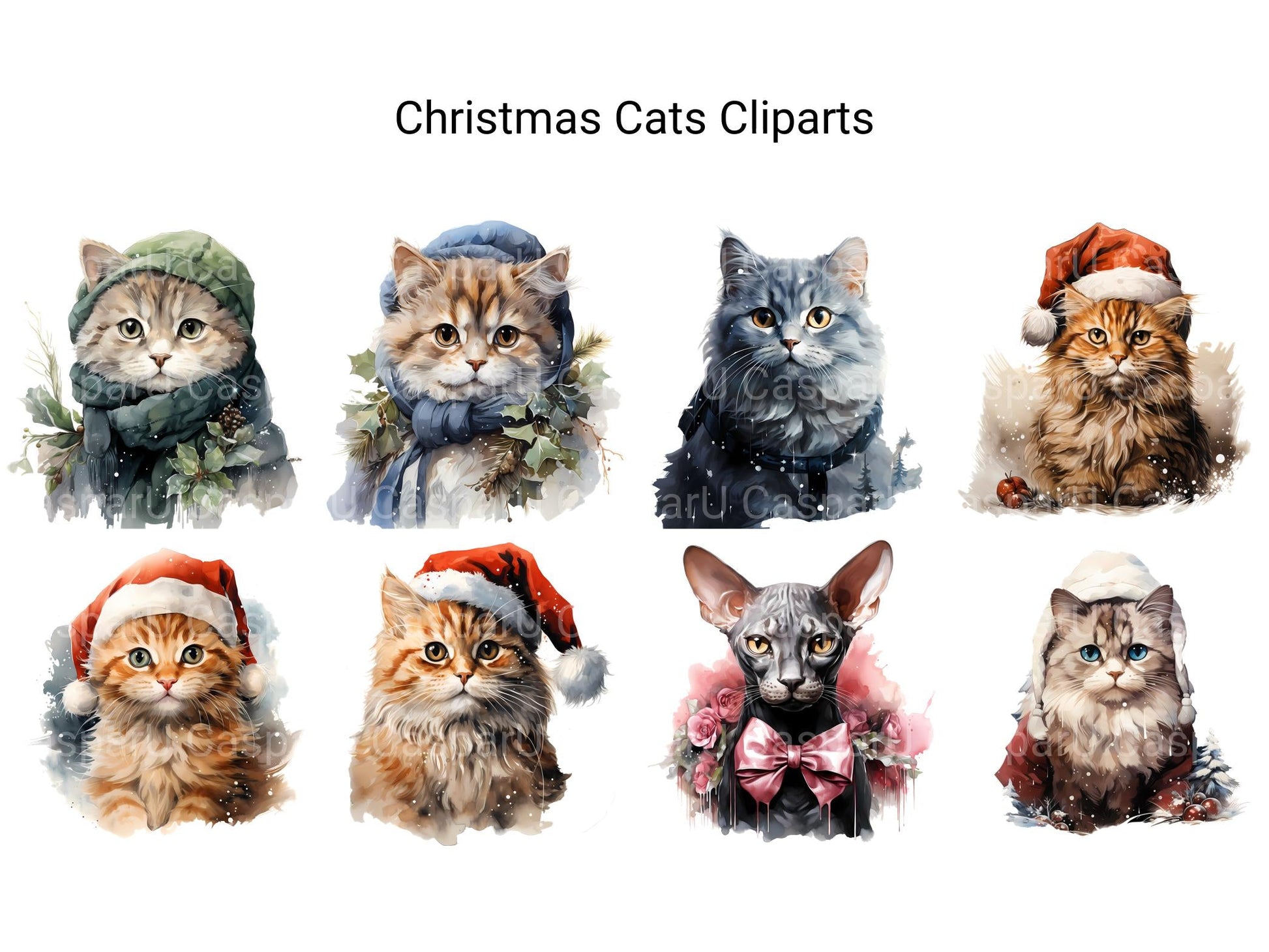 Purr-fect your holiday projects with our adorable Christmas Cats clip art. These digital illustrations feature playful felines frolicking in festive scenes, adding a dash of feline charm to your Christmas creations. Whether for cards, social media posts, or gift wrapping, these festive cat companions will bring smiles and warmth to cat lovers and Christmas enthusiasts alike, spreading joy and merriment with their irresistible antics.