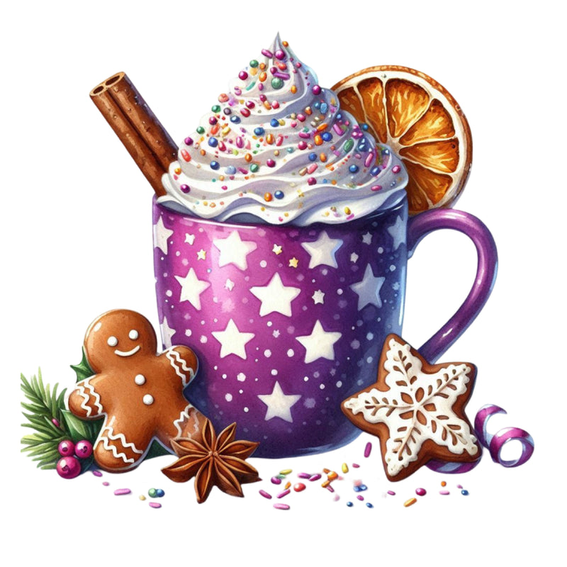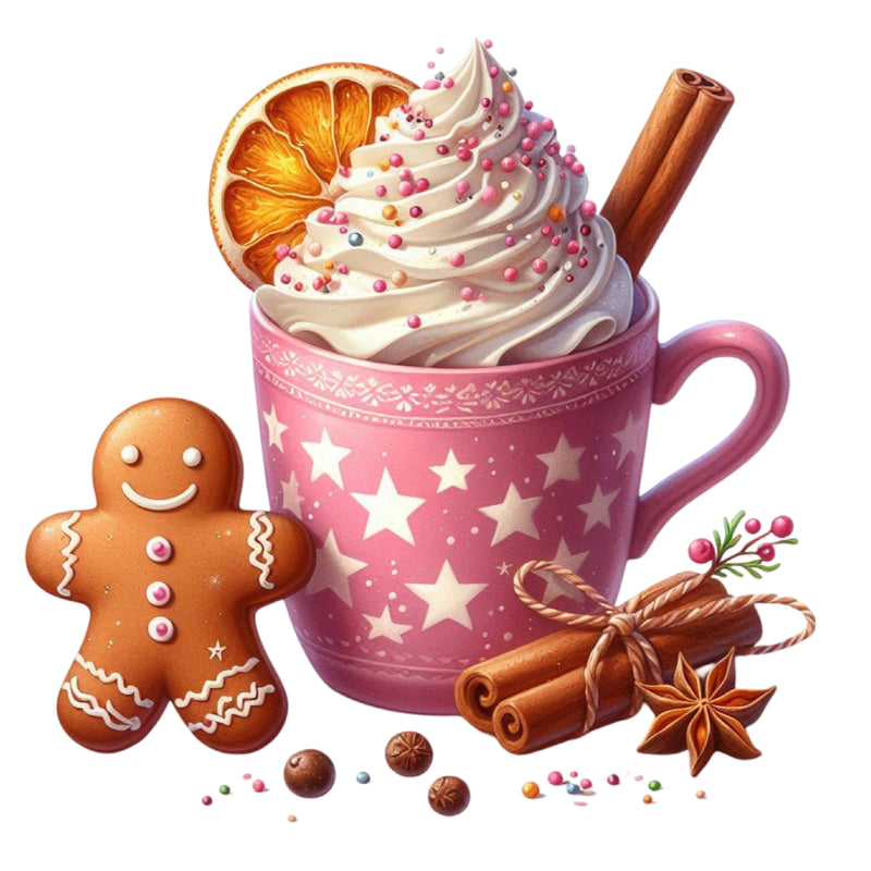 Festive coffee and gingerbread designs for holiday beverage projects.