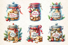 Store with this Christmas Cookie Jar Clipart Bundle, featuring festive treat container designs, perfect for holiday food crafts.