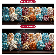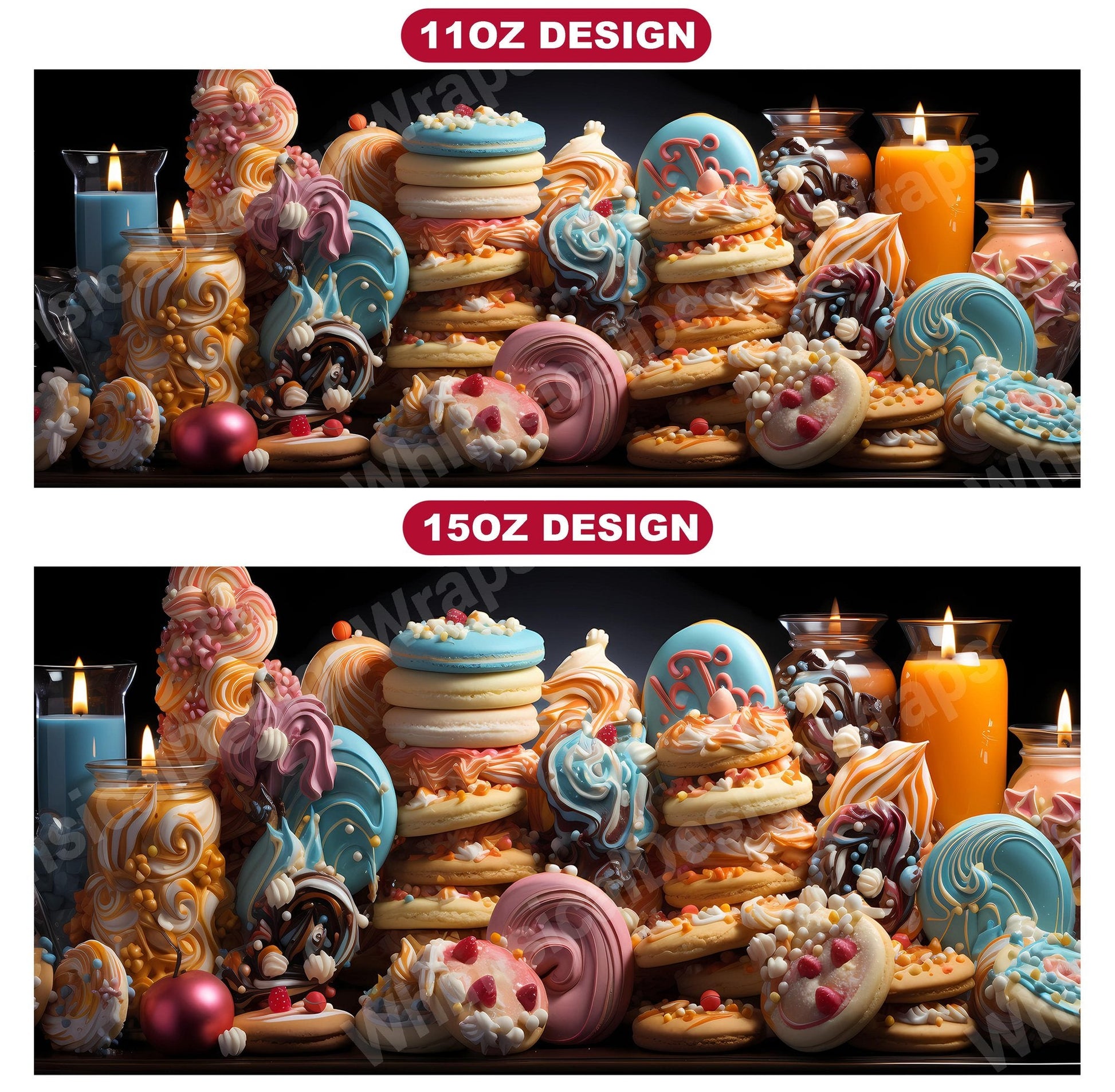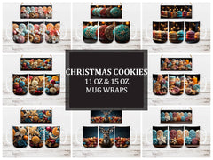 Treat yourself to a taste of holiday cheer with our Christmas cookie digital mug wraps. These whimsical designs feature an assortment of delicious cookies decorated with icing and sprinkles, evoking the warmth and sweetness of holiday baking, making them a delightful addition to your Christmas mug collection.