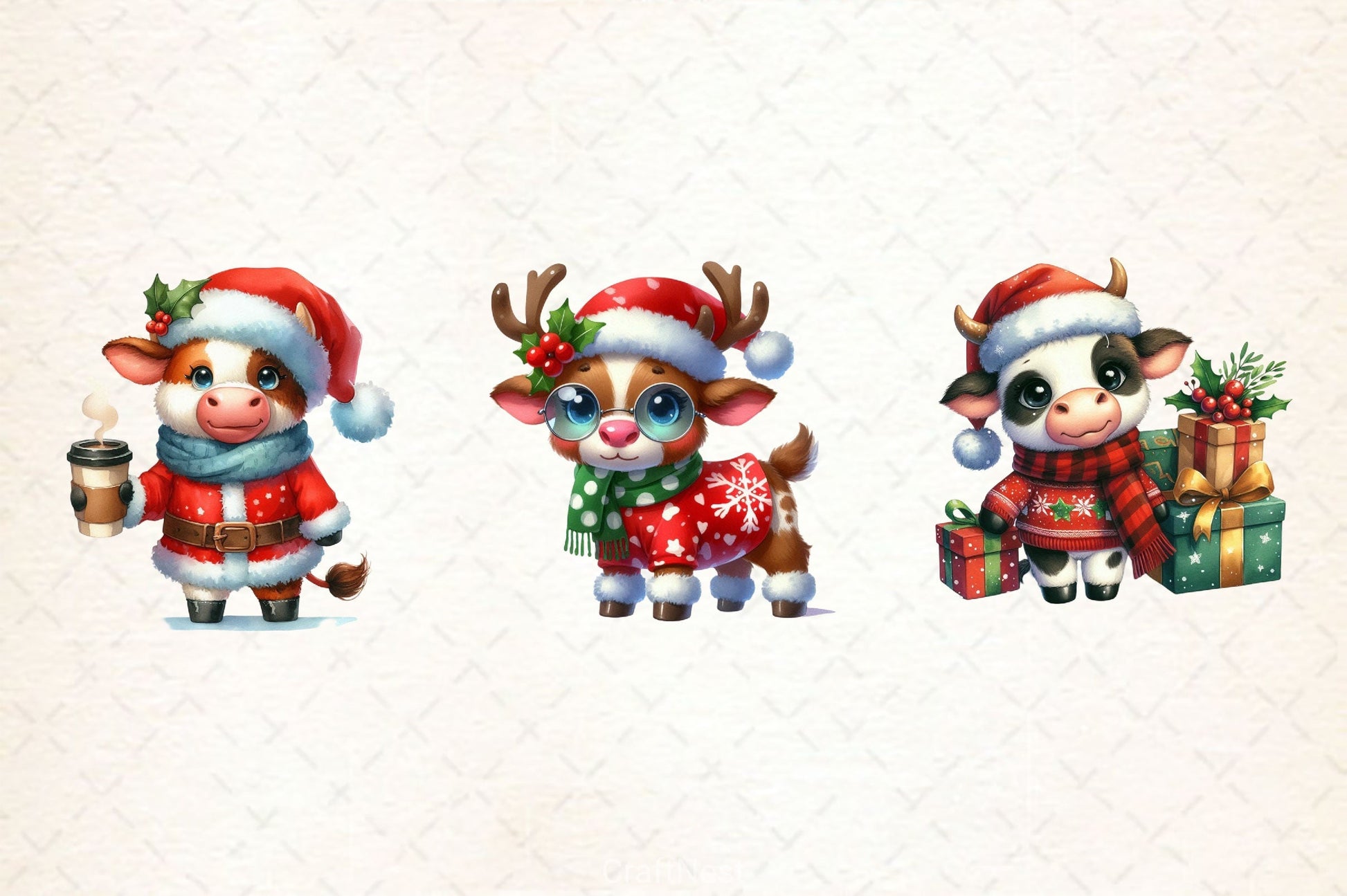 Moo with this Christmas Cow Cute Cow Clipart Bundle, featuring festive bovine designs, perfect for farm Christmas crafts.