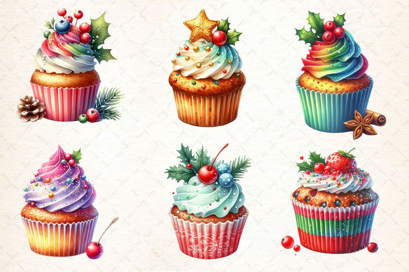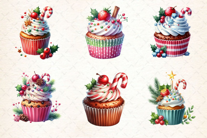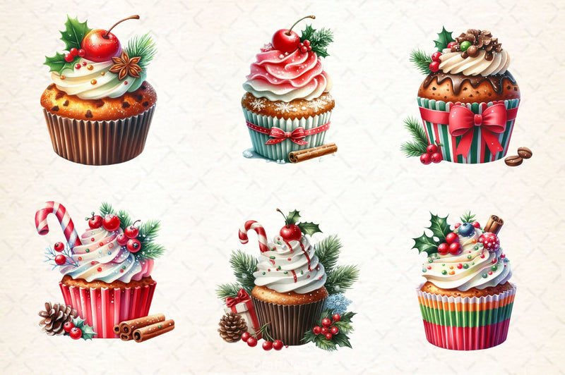 Christmas Cupcake Vintage Cupcake Clipart Bundle