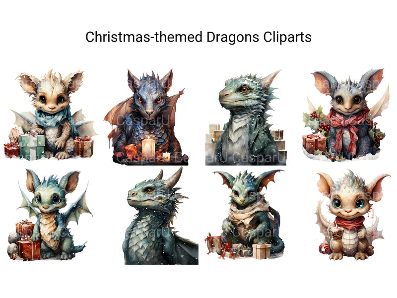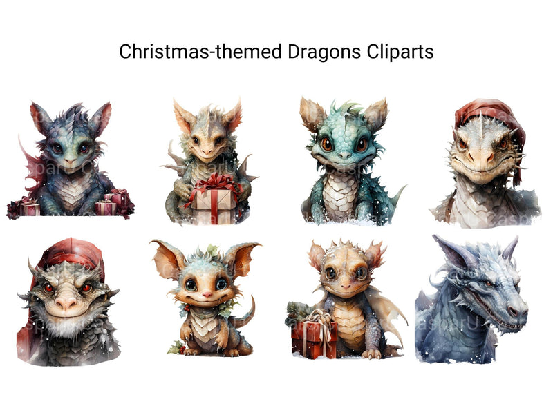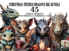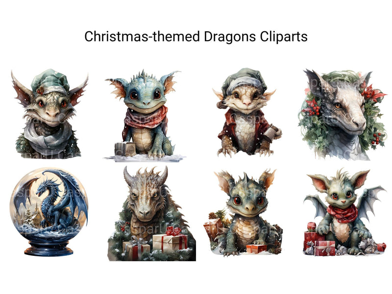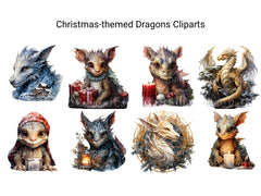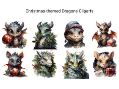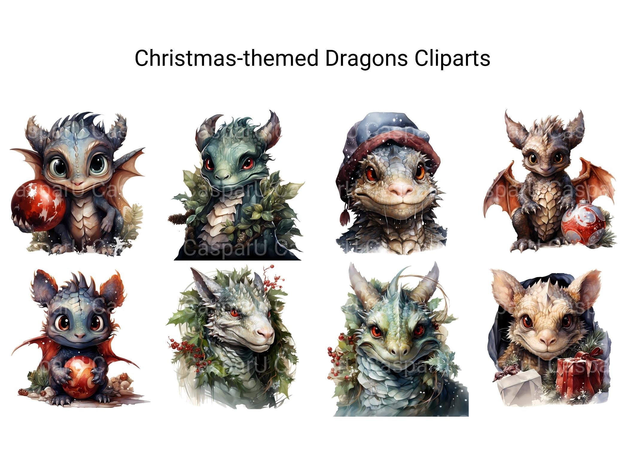 Ignite the holiday spirit with our Christmas Dragons clip art. These digital illustrations showcase majestic dragons adorned with festive ornaments and wreaths, perfect for adding a touch of mythical wonder to your Christmas designs, whether for cards, fantasy-themed gifts, or festive decorations, captivating imaginations with the magic and grandeur of dragons celebrating the season in style.