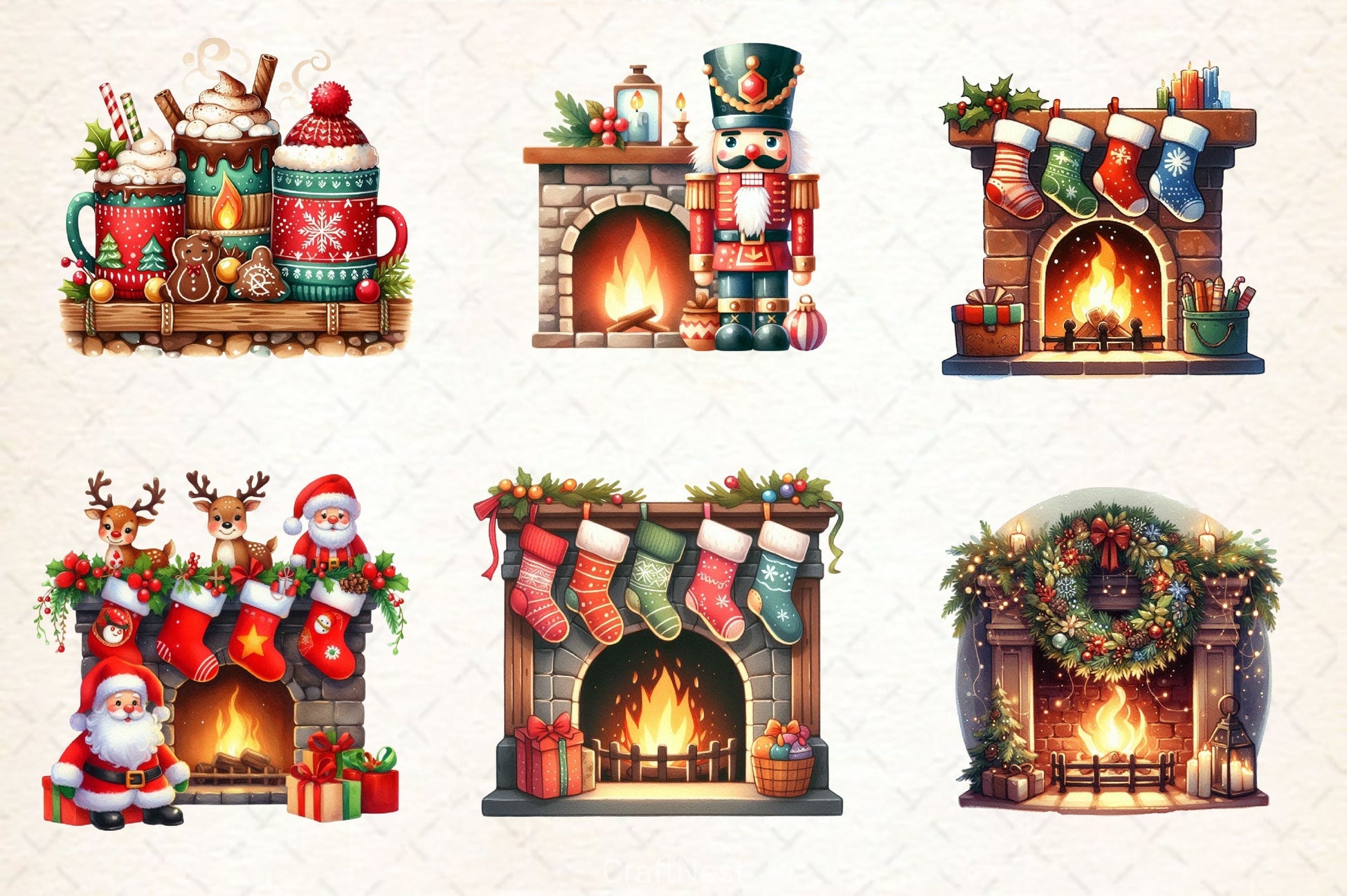 Cozy with this Christmas Fireplace Clipart Bundle, featuring warm holiday hearth designs, perfect for comfort Christmas crafts.