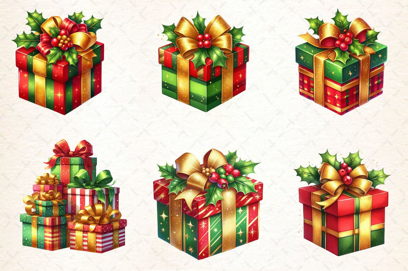 Give with this Christmas Gifts Clipart Bundle, featuring festive present designs, perfect for holiday giving crafts.