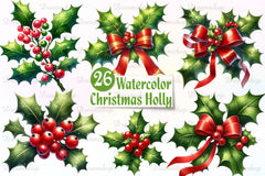 Deck with this Christmas Holly Clipart Bundle, featuring festive holly designs, perfect for holiday decoration crafts.