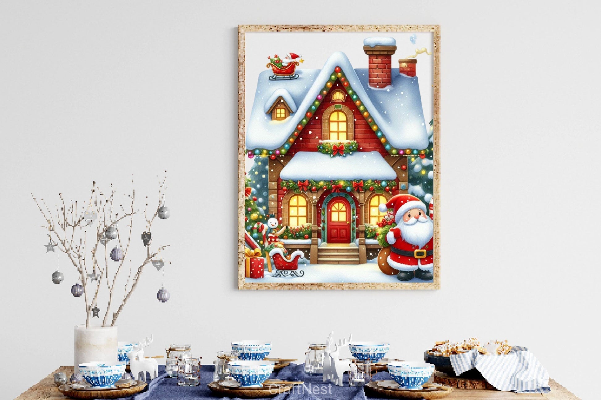 Workshop with this Christmas House Santa House Clipart Bundle, featuring North Pole dwelling designs, perfect for magical Christmas crafts.