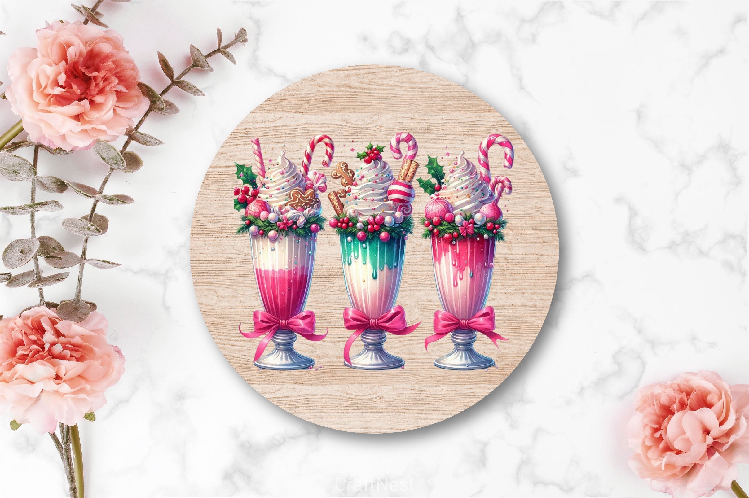 Festive ice cream and milkshake designs for holiday dessert projects.