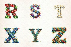 Light with this Christmas Lights Applique Alphabet Clipart Bundle, featuring illuminated letter designs, perfect for Christmas alphabet crafts.