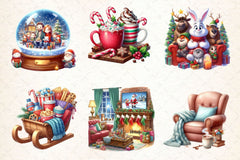 Cozy Christmas movie night elements for holiday entertainment projects.