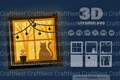 Christmas Night Cat Papercut SVG Bundle