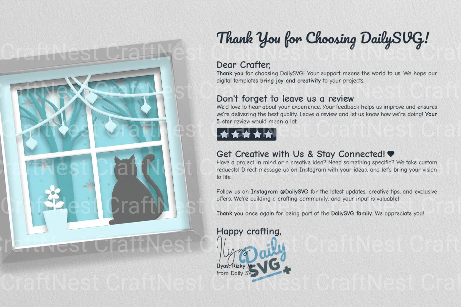 Illuminate your holiday crafts with the Christmas Night Cat Papercut SVG Bundle. Featuring intricate cat designs set against a festive backdrop, this bundle is perfect for creating enchanting decorations, cards, and gifts. Ideal for cat lovers and holiday enthusiasts, these SVG files bring a touch of magic to your seasonal projects.