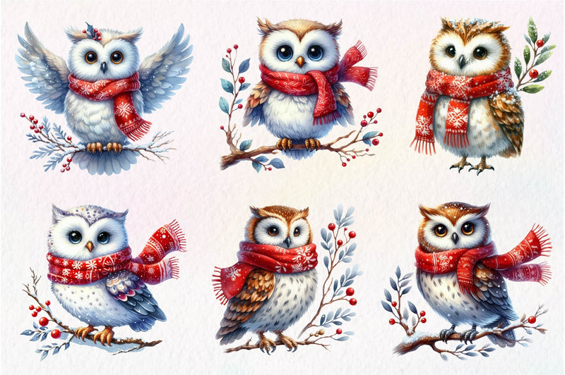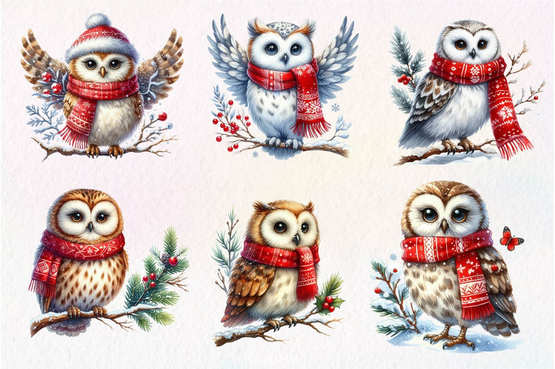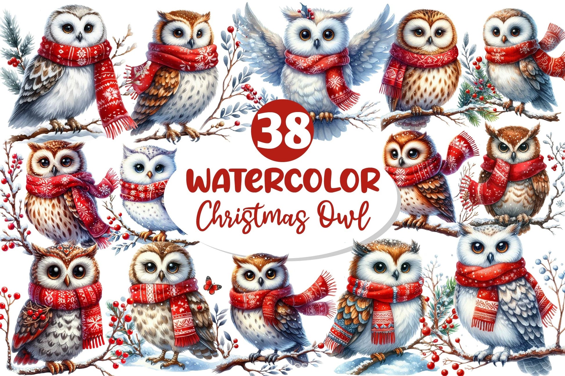 Hoot with this Christmas Owl Clipart Bundle, featuring wise holiday bird designs, perfect for festive owl crafts.
