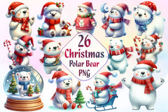 Chill with this Christmas Polar Bear Clipart Bundle, featuring arctic holiday designs, perfect for winter Christmas crafts.