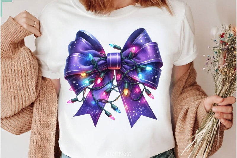 Tie with this Christmas Purple Bow Clipart Bundle, featuring royal festive designs, perfect for elegant Christmas crafts.