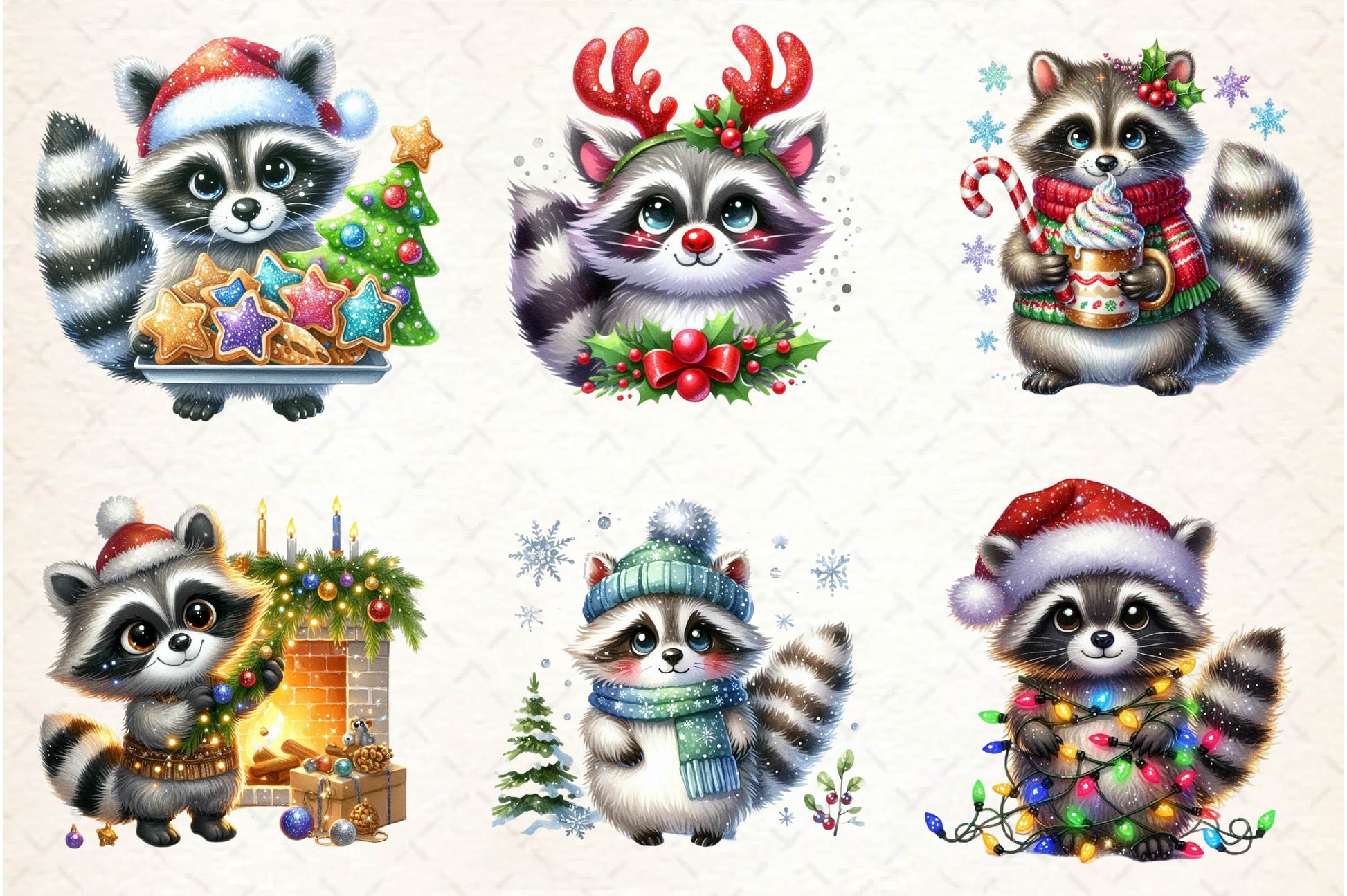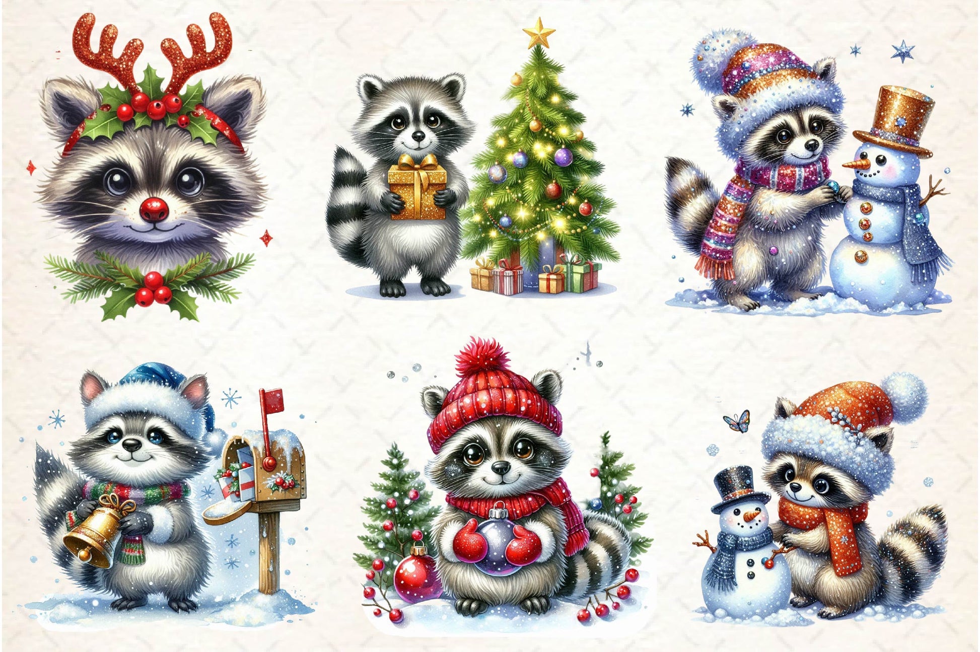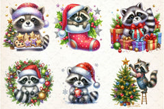 Wash with this Christmas Raccoon Clipart Bundle, featuring masked holiday designs, perfect for Christmas animal crafts.