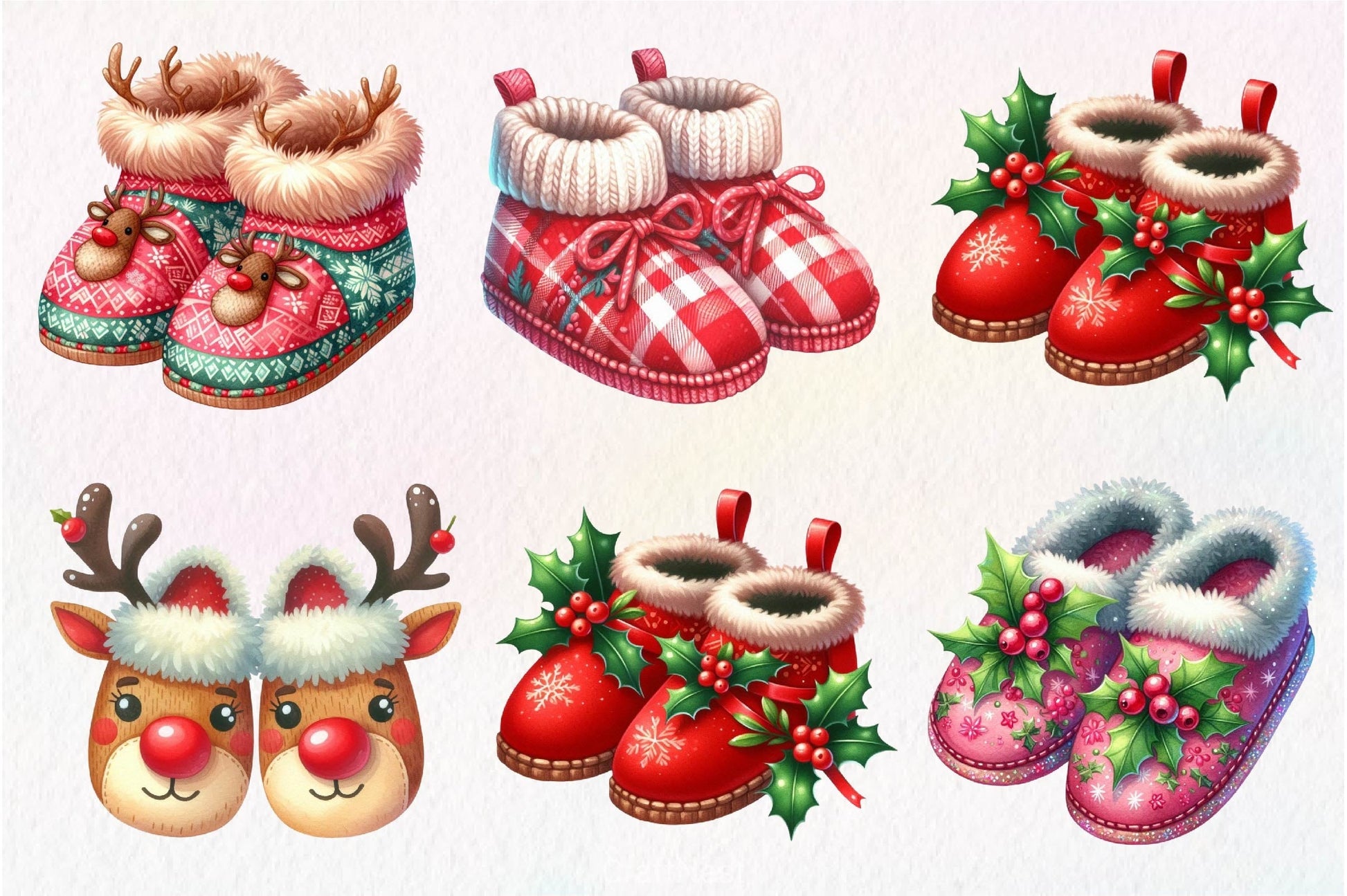 Cozy with this Christmas Slipper Clipart Bundle, featuring festive footwear designs, perfect for comfort Christmas crafts.