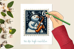 Mail with this Christmas Snowman Postage Stamps Clipart Bundle, featuring winter stamp designs, perfect for vintage Christmas crafts.