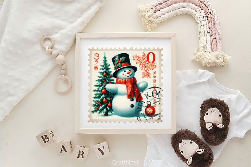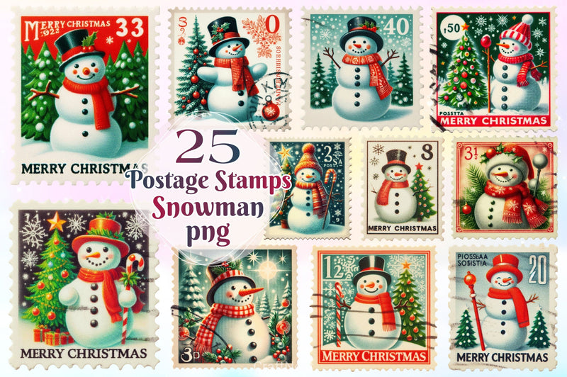Christmas Snowman Postage Stamps Clipart Bundle 2