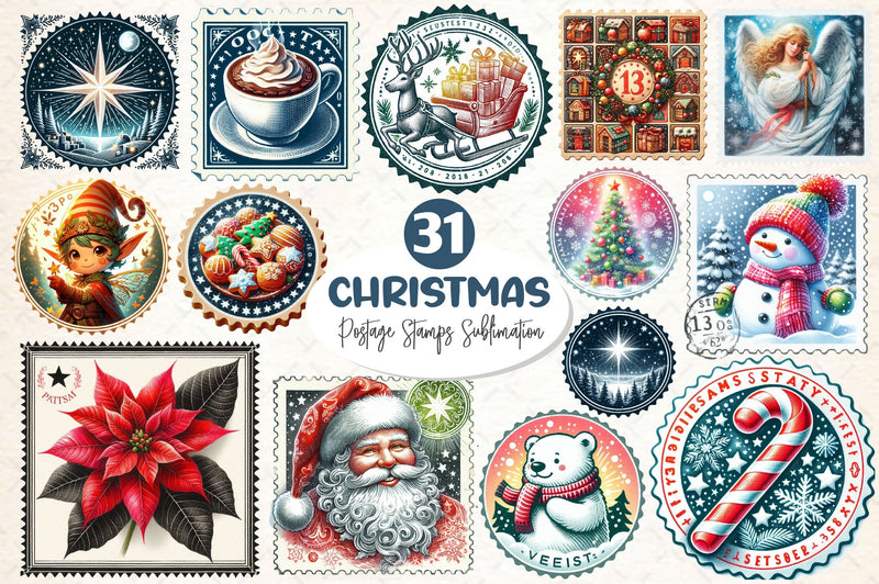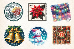 Mail with this Christmas Stamps Clipart Bundle, featuring festive postal designs, perfect for holiday communication crafts.