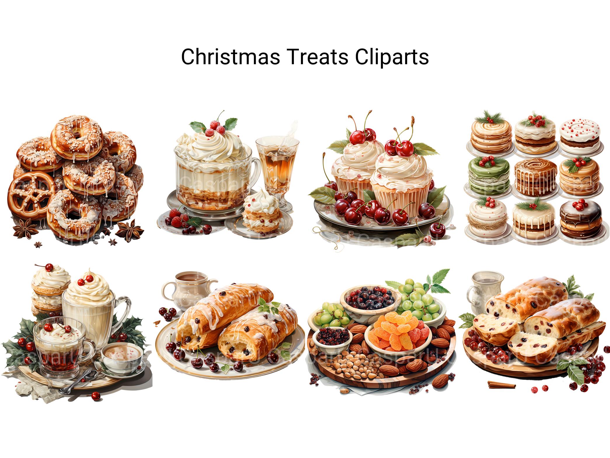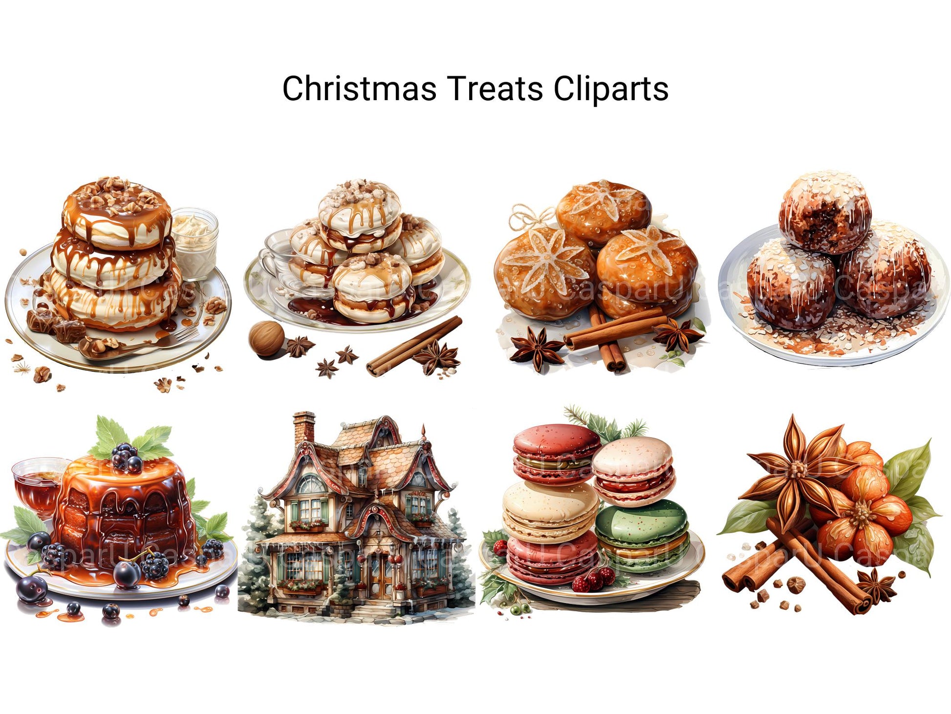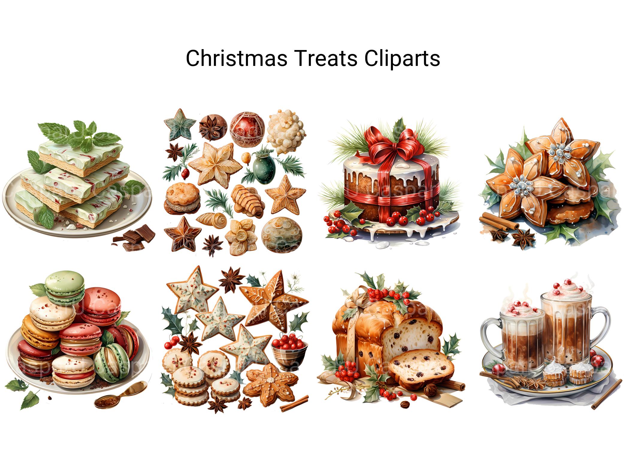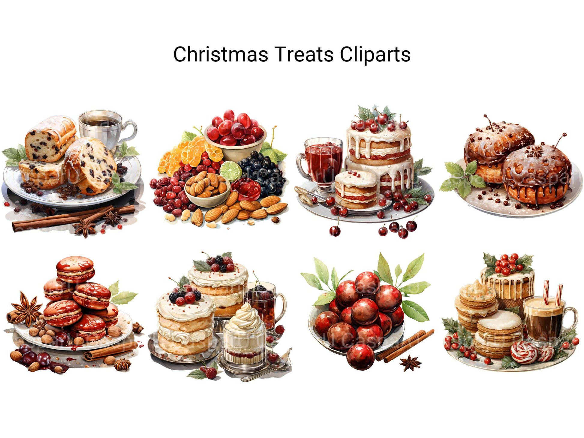Indulge in the sweet delights of the season with our Christmas Treats clip art. These digital illustrations feature delectable holiday confections, from gingerbread cookies to candy canes, perfect for adding a sprinkle of sweetness to your Christmas designs, whether for cards, recipe books, or festive decorations, enticing viewers with the irresistible flavors and festive spirit of holiday treats.