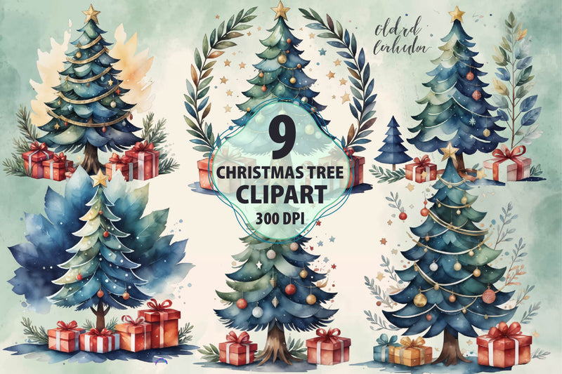 Illuminate with this Christmas Tree Clipart Bundle, featuring festive evergreen designs, perfect for holiday decoration crafts.