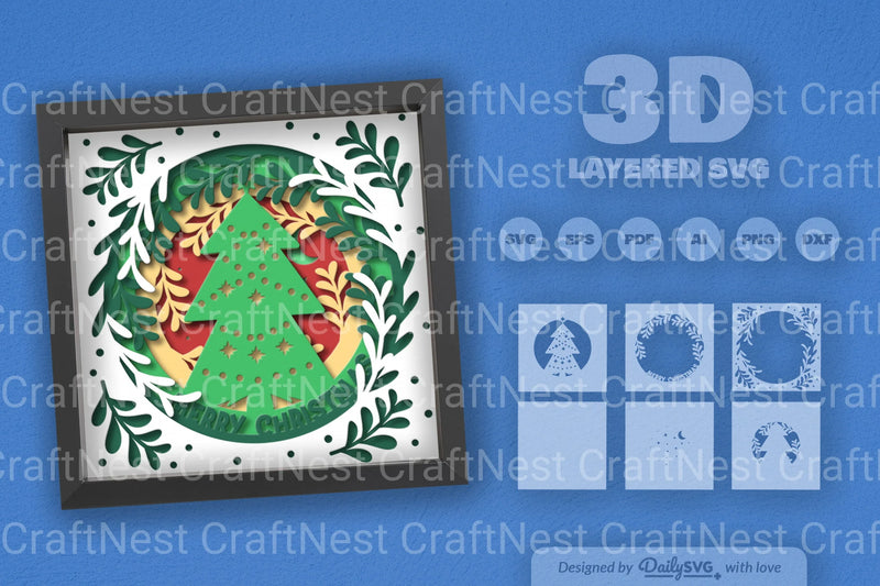 Christmas Tree Papercut Shadow Box SVG Bundle