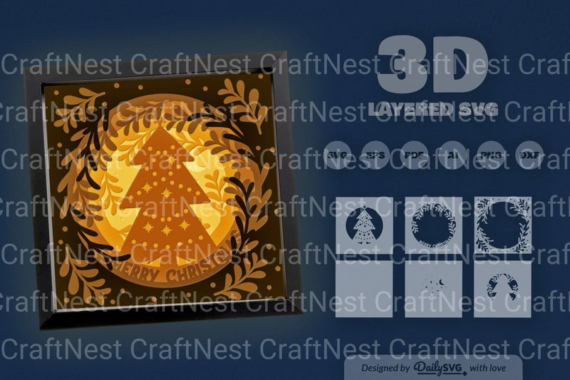 Illuminate your holiday decor with the Christmas Tree Papercut Shadow Box SVG Bundle. Perfect for crafting festive shadow boxes, this bundle features intricate Christmas tree designs that bring a magical touch to your seasonal projects. Ideal for DIY enthusiasts and crafters looking to create unique holiday decorations.