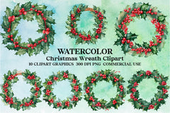 Adorn with this Christmas Wreath Clipart Bundle, featuring decorative wreath designs, perfect for holiday door crafts.