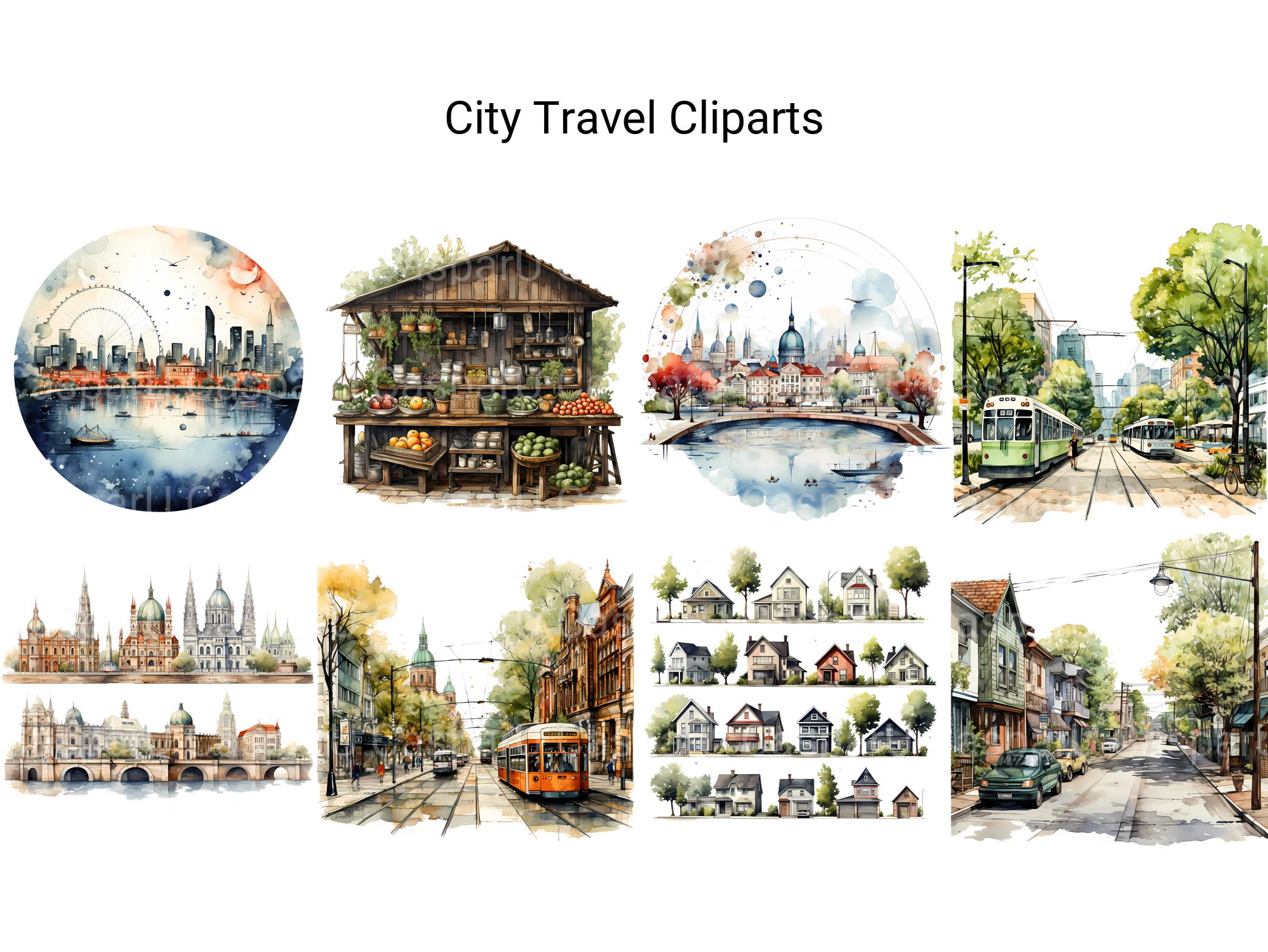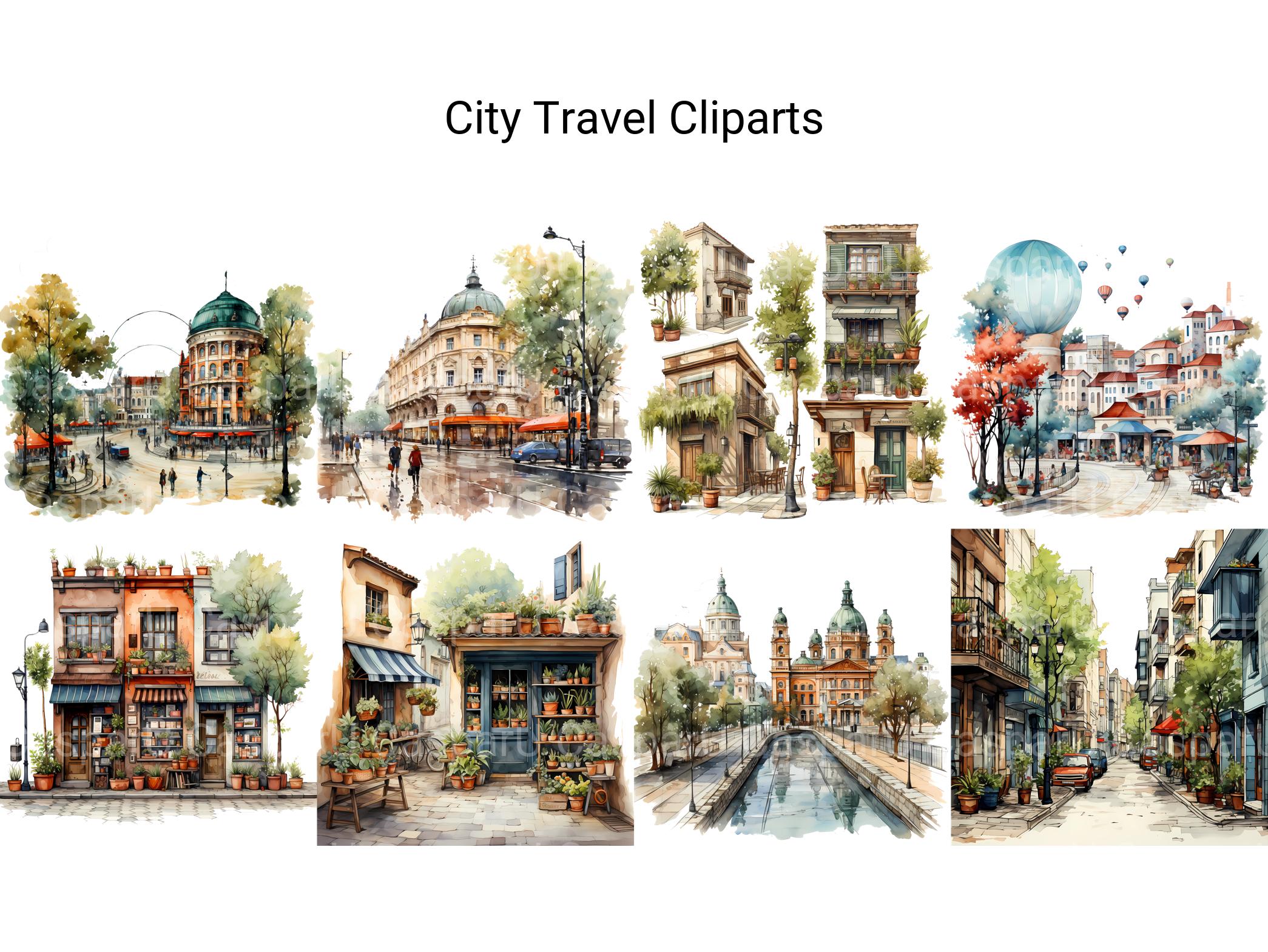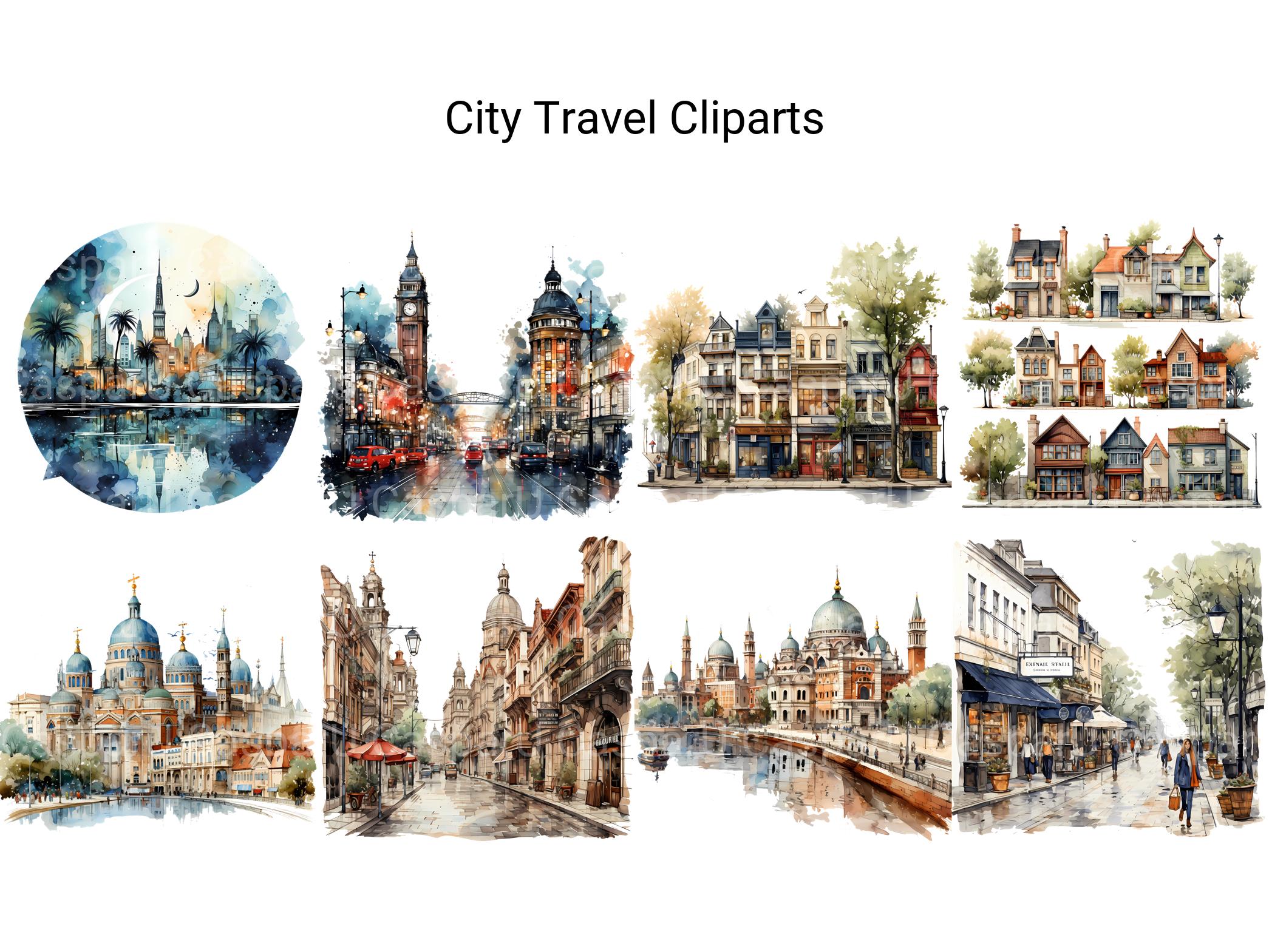 Explore the dynamic energy of urban landscapes with digital clip art featuring iconic cityscapes, bustling streets, and cultural landmarks. From skyscrapers to historic monuments, these illustrations capture the vibrancy and diversity of city travel, perfect for adding an urban flair to your projects, whether for travel guides, city maps, or promotional materials, inviting viewers to discover the excitement and charm of cosmopolitan destinations around the world.