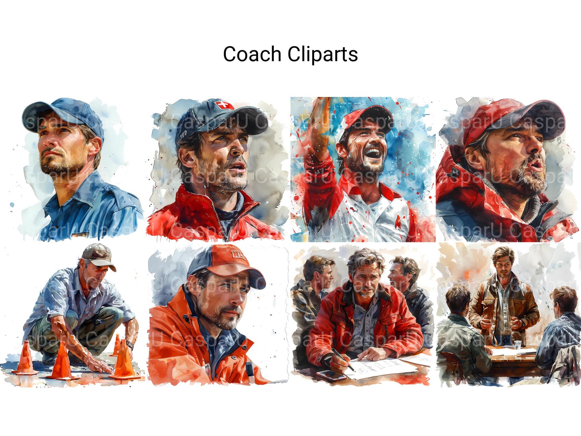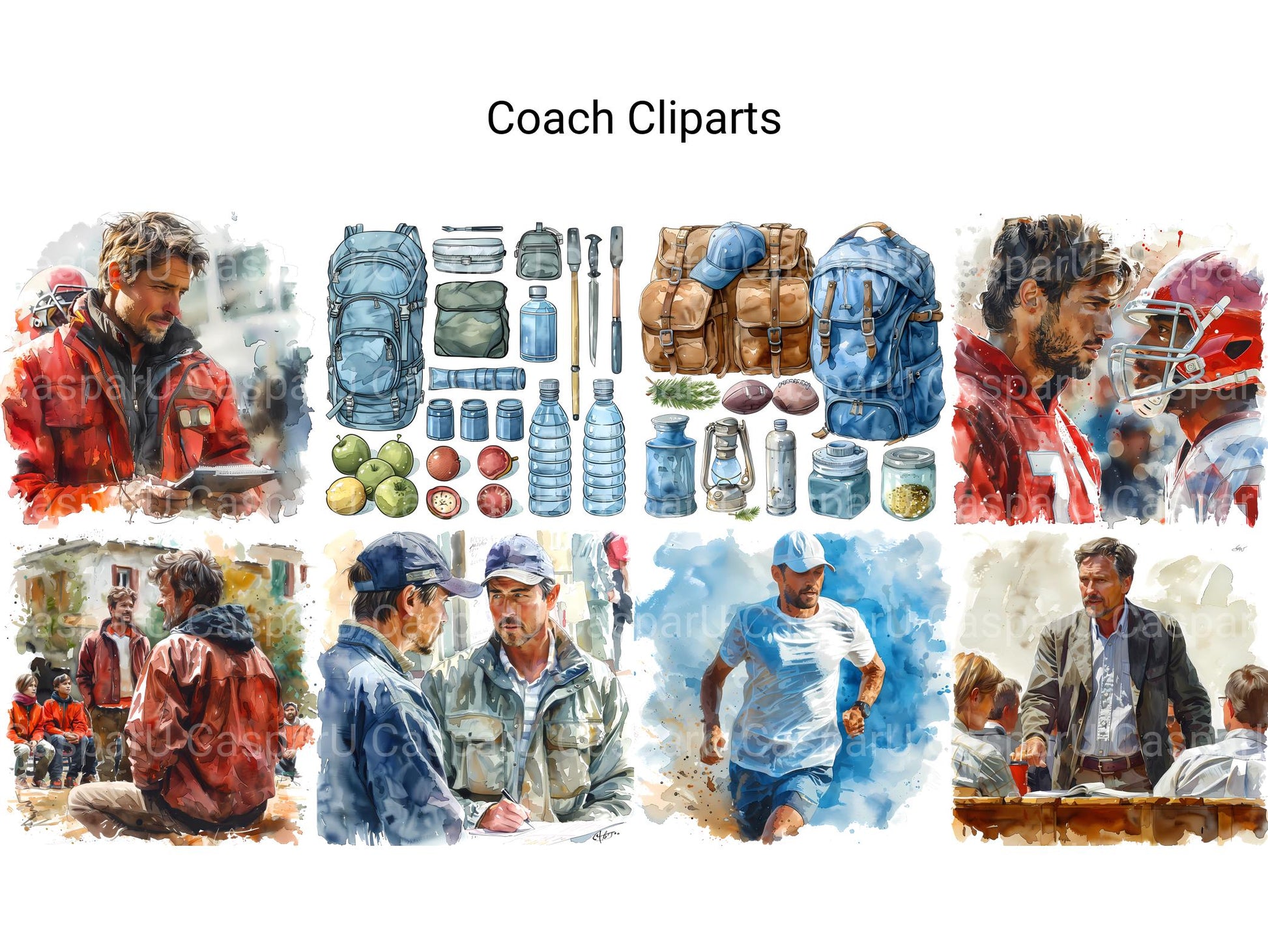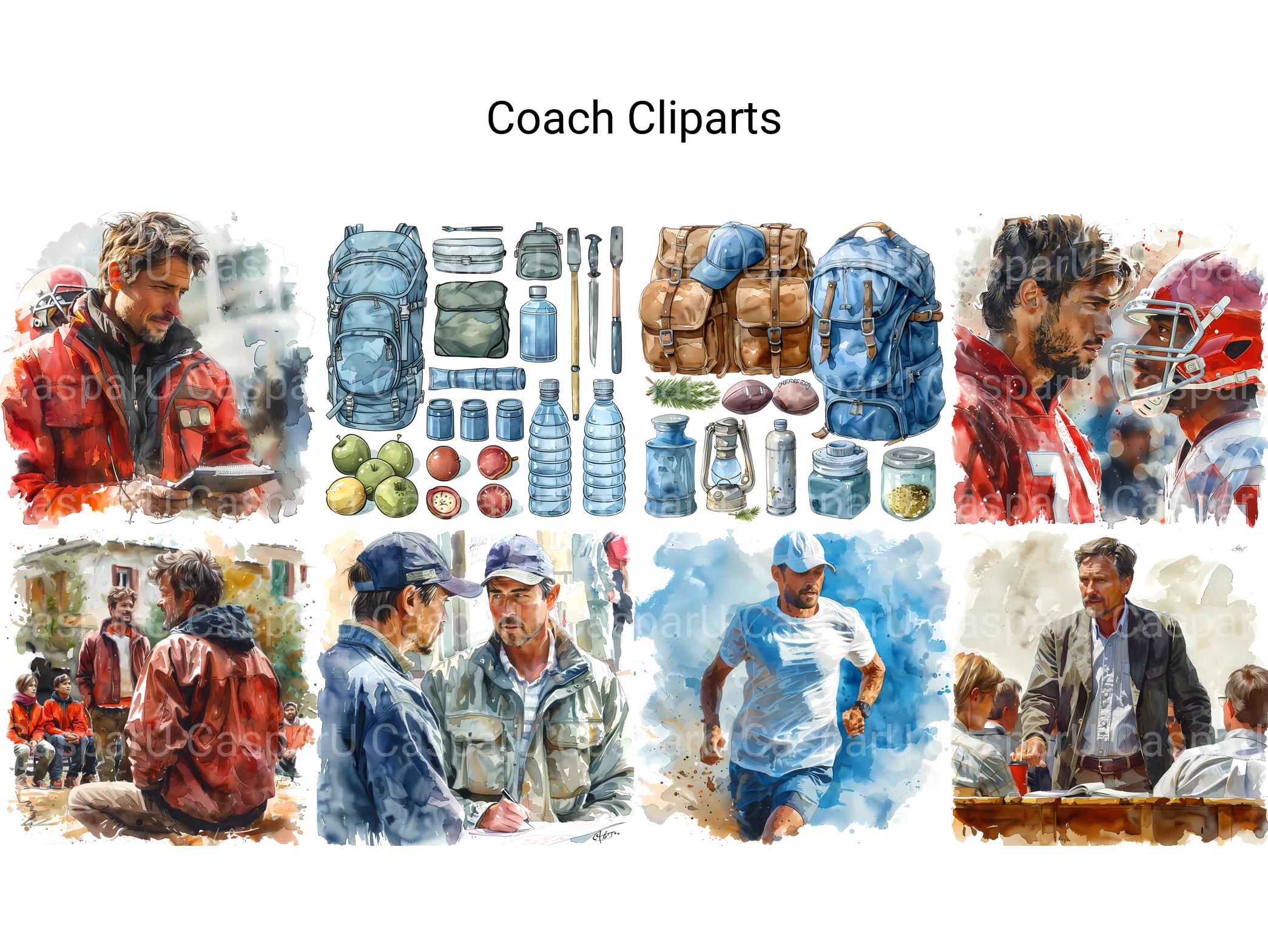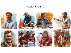 Our coach-themed digital cliparts feature sports equipment, training schedules, and motivational symbols. Perfect for sports programs, fitness blogs, and team-building presentations. Celebrate the spirit of coaching with these dynamic and inspiring cliparts.