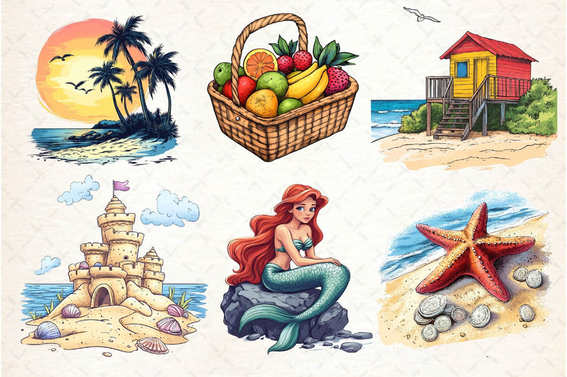 Beautiful coastal elements perfect for beach and ocean themed projects.
