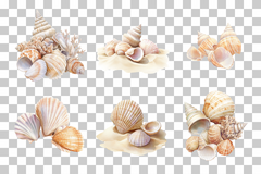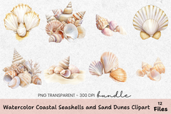 Coastal Seashells and Sand Dunes Clipart Bundle