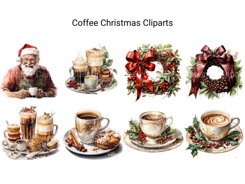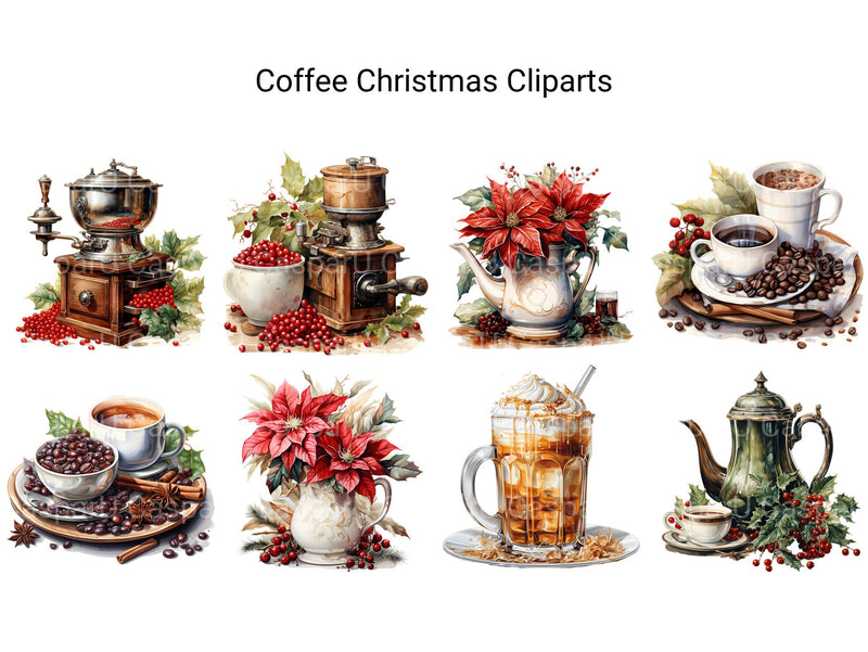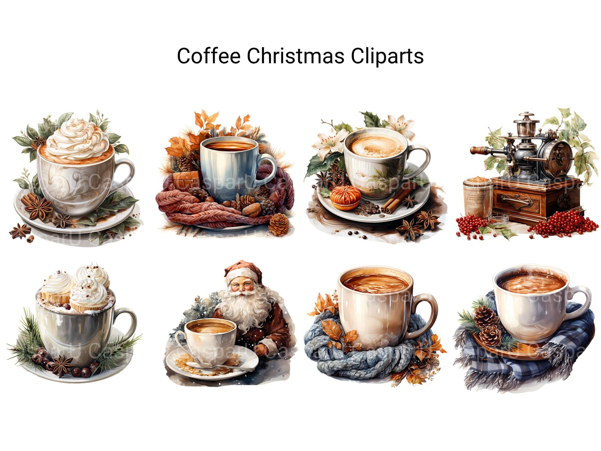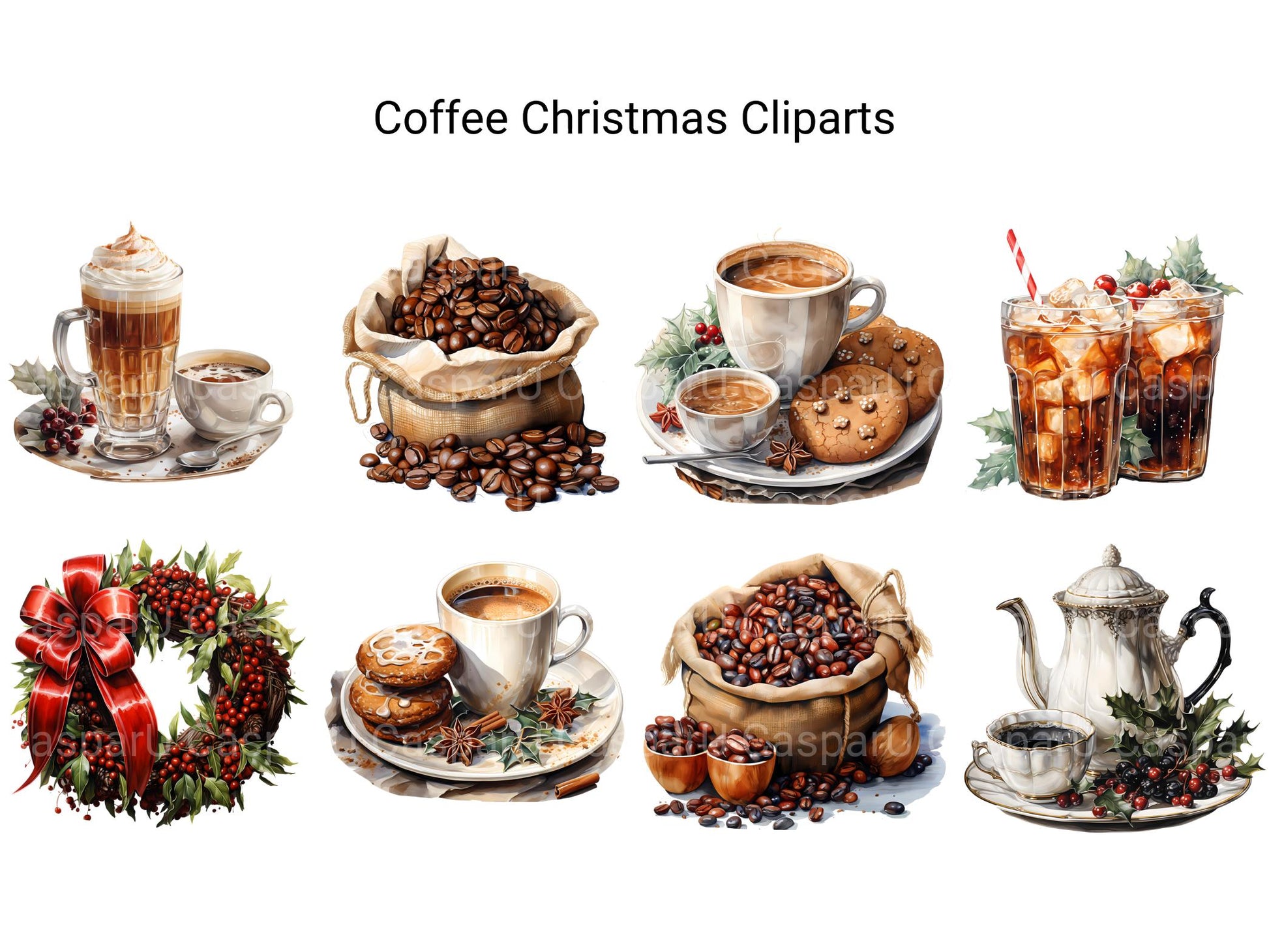 Savor the warmth and aroma of the season with our Coffee Christmas clip art. These digital illustrations feature cozy scenes of holiday coffee cups adorned with festive motifs, perfect for adding a touch of comfort and joy to your Christmas designs, whether for cards, social media posts, or coffee shop promotions, inviting viewers to cozy up with a cup of holiday cheer and caffeine-infused festivities.