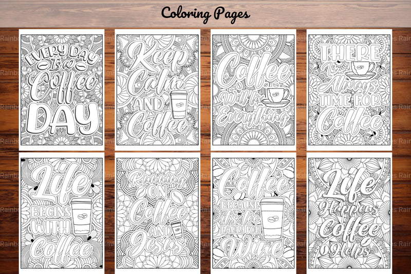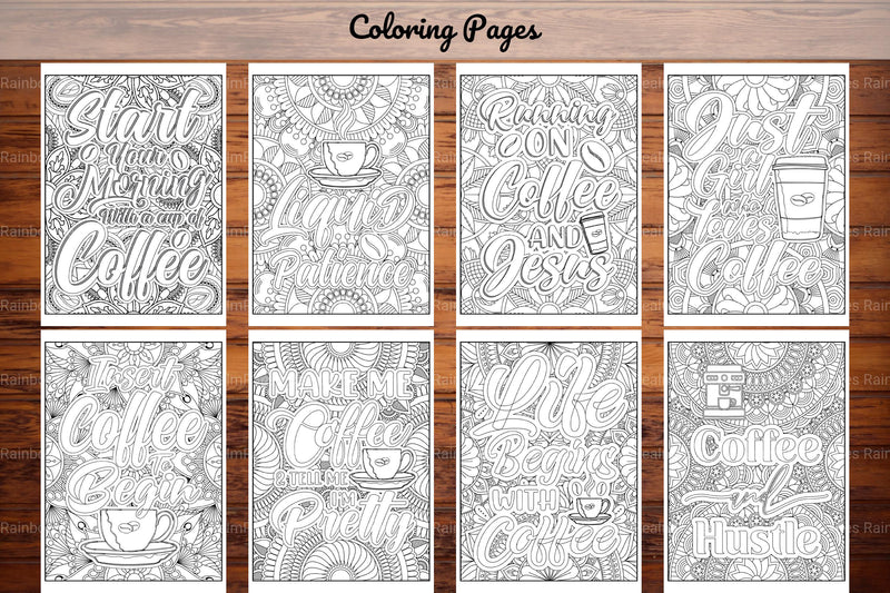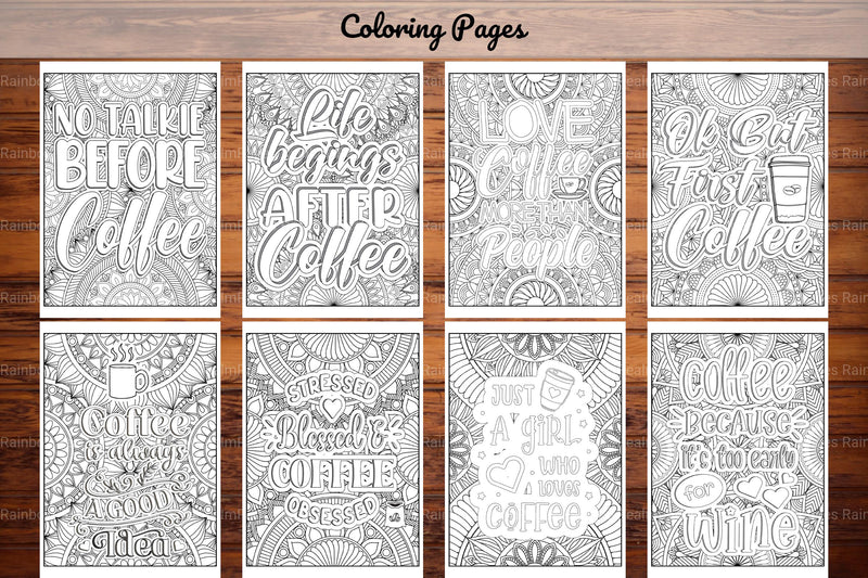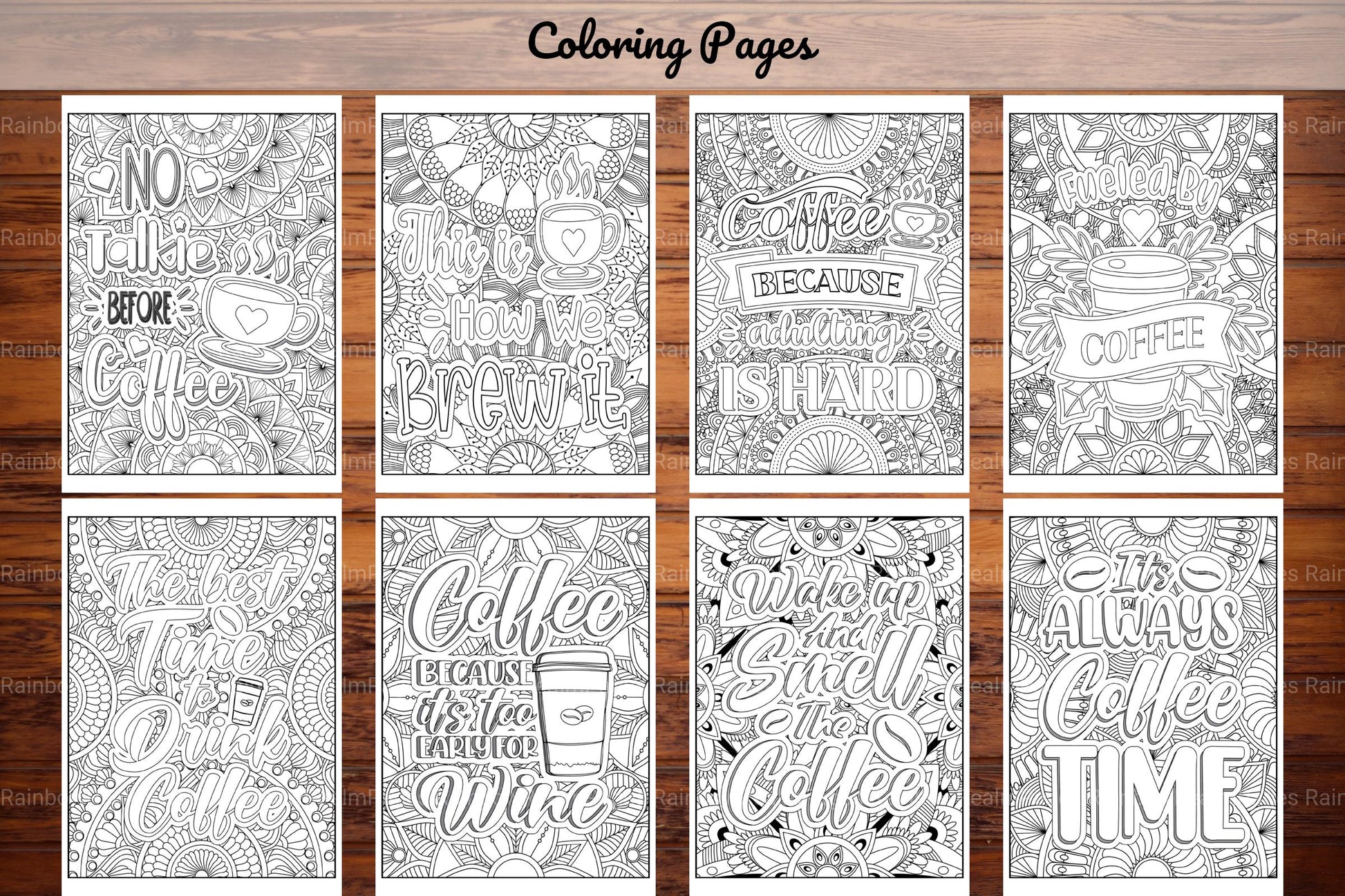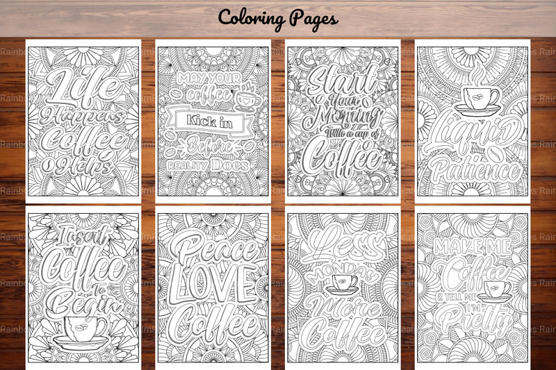 Brew with this Coffee Quotes Coloring Book, featuring coffee sayings and cafe designs, perfect for coffee lover coloring.