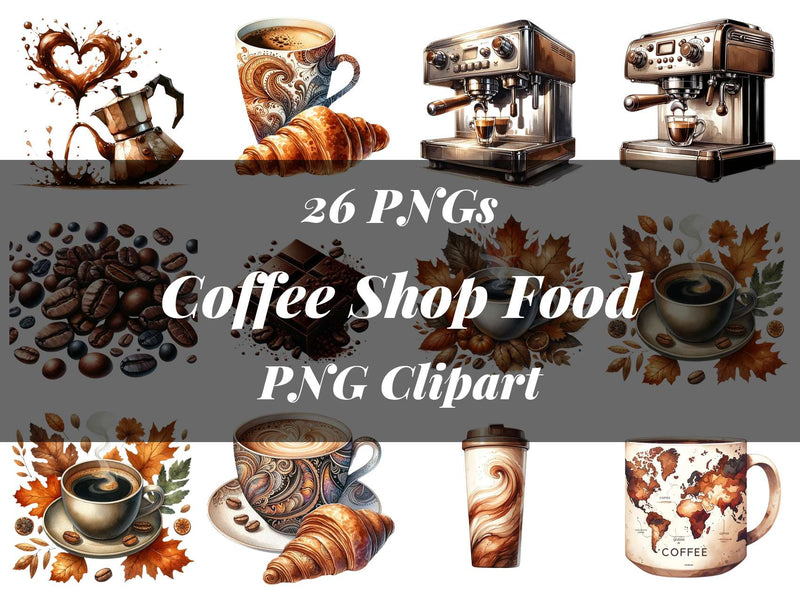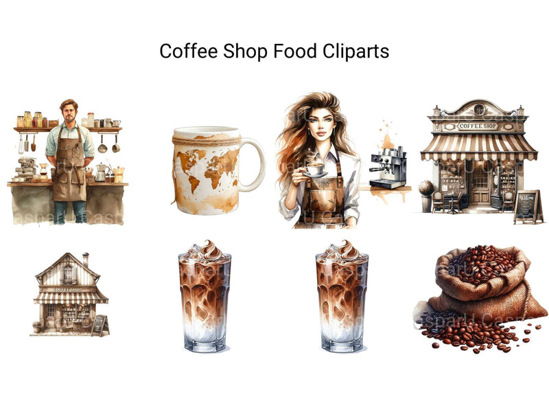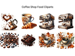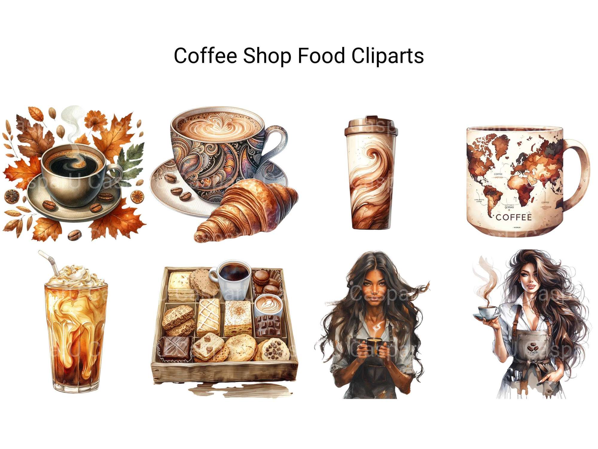 Visit the café with this Coffee Shop Clipart set, featuring shop-themed designs, perfect for coffee lover projects.