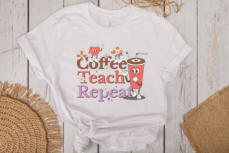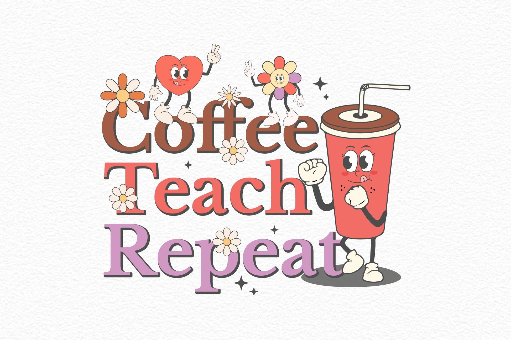 Cycle with this Coffee Teach Repeat Clipart Bundle, featuring educator routine designs, perfect for teaching profession crafts.