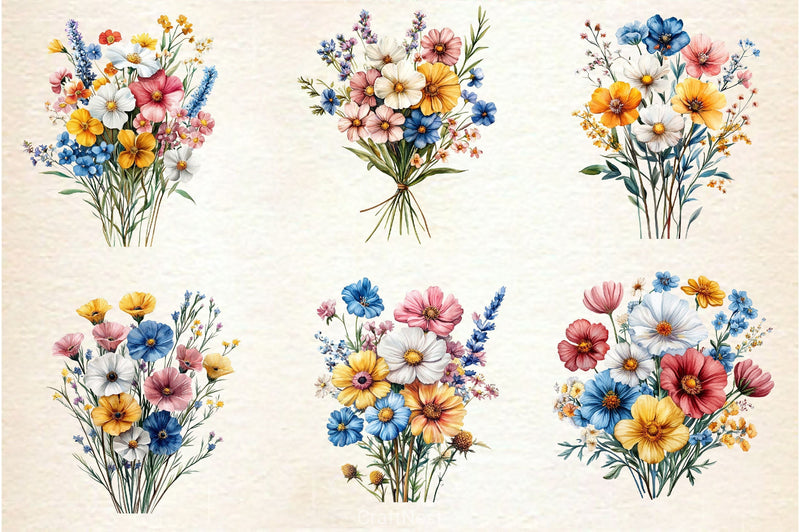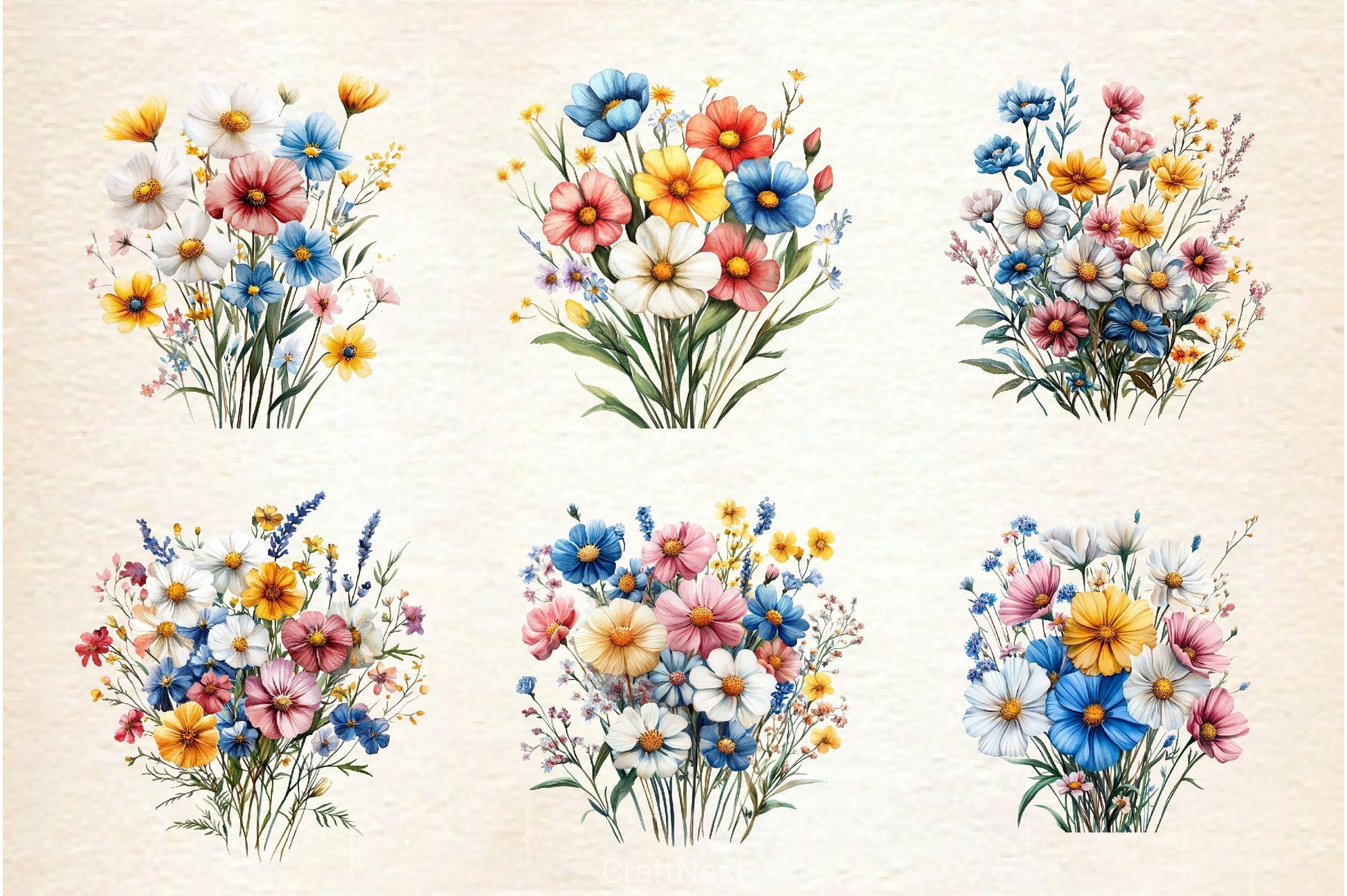 Field with this Colorful Meadow Flower Clipart Bundle, featuring wildflower meadow designs, perfect for natural garden crafts.