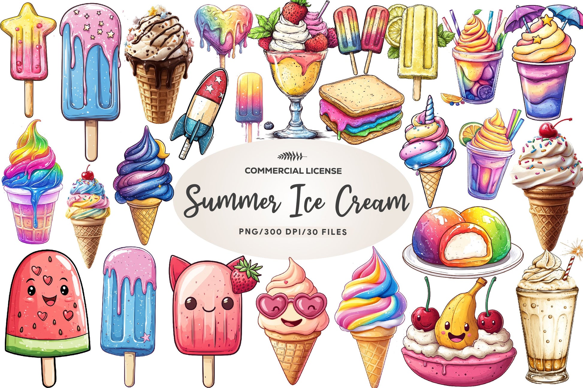 Colorful Summer Ice Cream Clipart Bundle