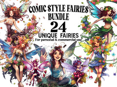 Step into a world of vibrant colors and dynamic energy with our Comic Style Fairies clip art. These playful digital illustrations capture fairies in a bold and expressive comic book style, with dynamic poses, speech bubbles, and action-packed scenes, perfect for adding a sense of fun and excitement to your designs.