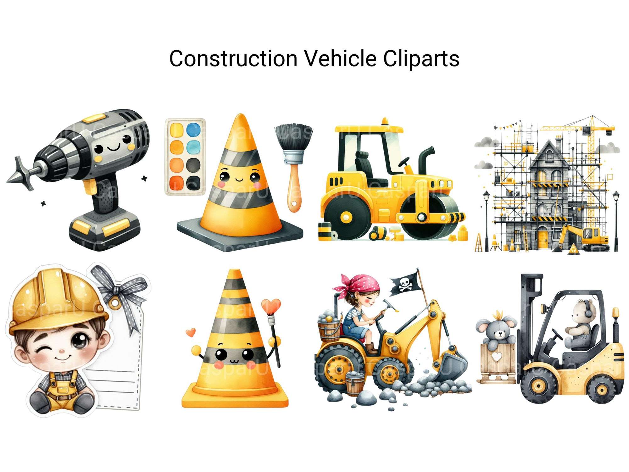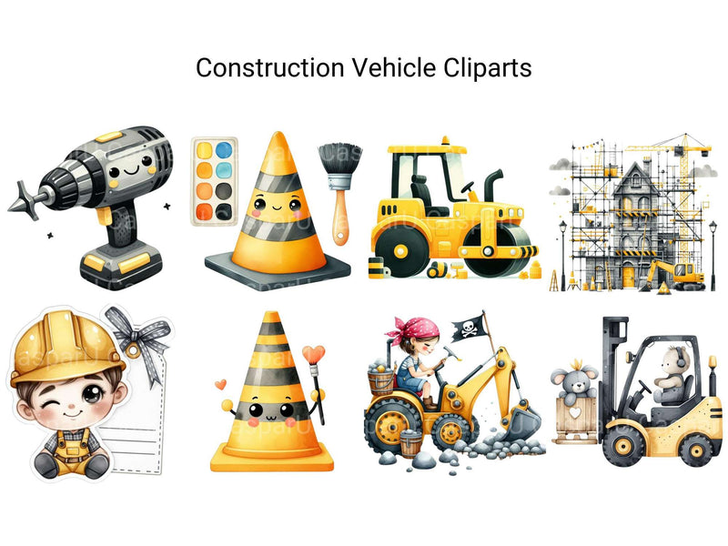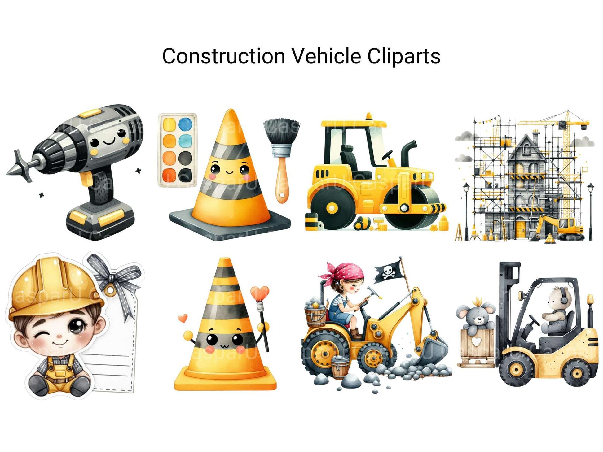 Build it up with this Construction Vehicle Clipart bundle, featuring rugged designs, ideal for construction-themed projects.