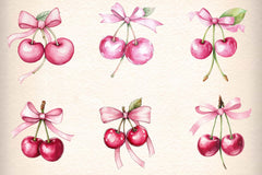 Coquette Cherries Bow Clipart Bundle 1