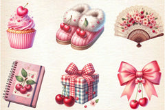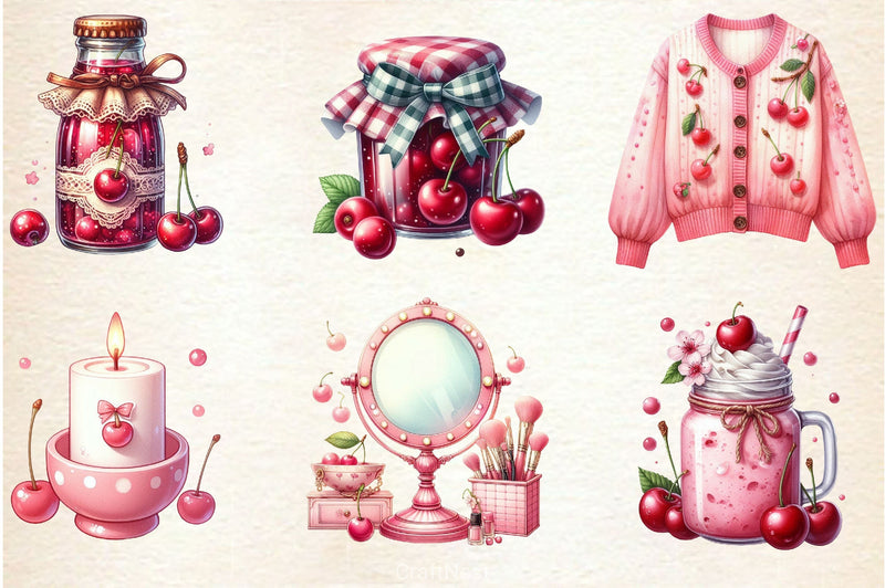 Sweet with this Coquette Cherry Clipart Bundle, featuring girly fruit designs, perfect for feminine food crafts.