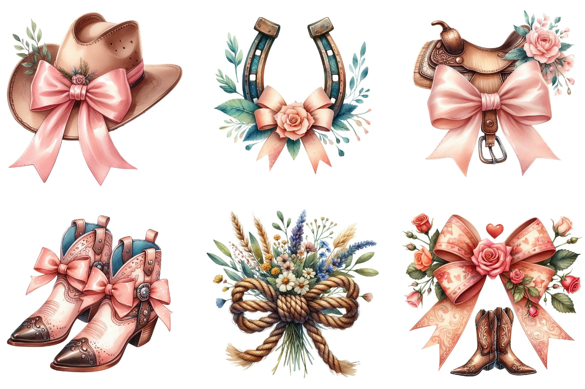 Coquette Cowgirl Bow Clipart Bundle