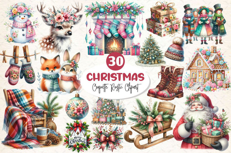 Elegant rustic Christmas designs with coquette styling for holiday projects.