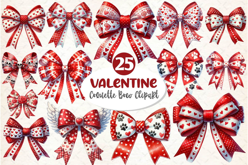 Tie with this Coquette Valentine Bow Clipart Bundle, featuring girly romantic bow designs, perfect for feminine valentine crafts.